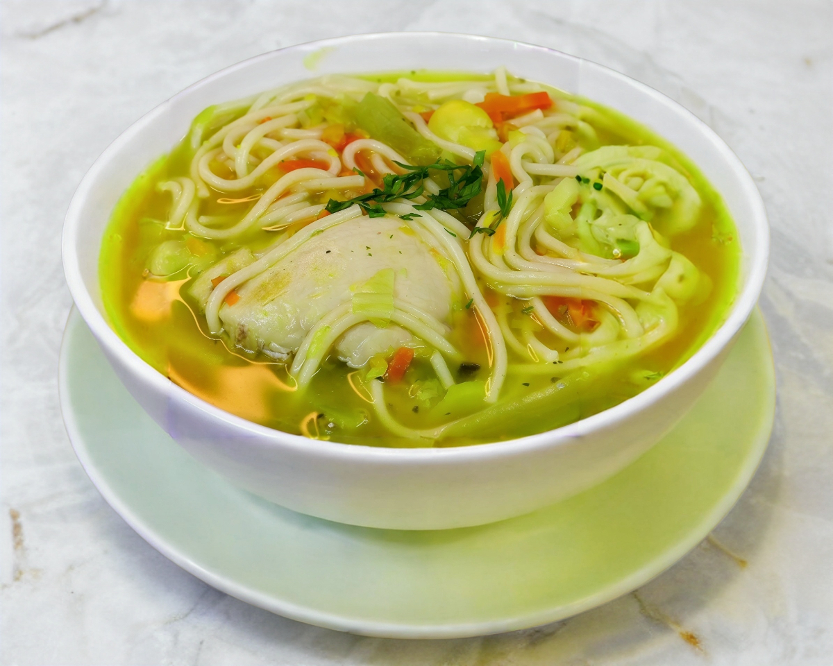 Caldo De Pollo con Verduras y Fideos