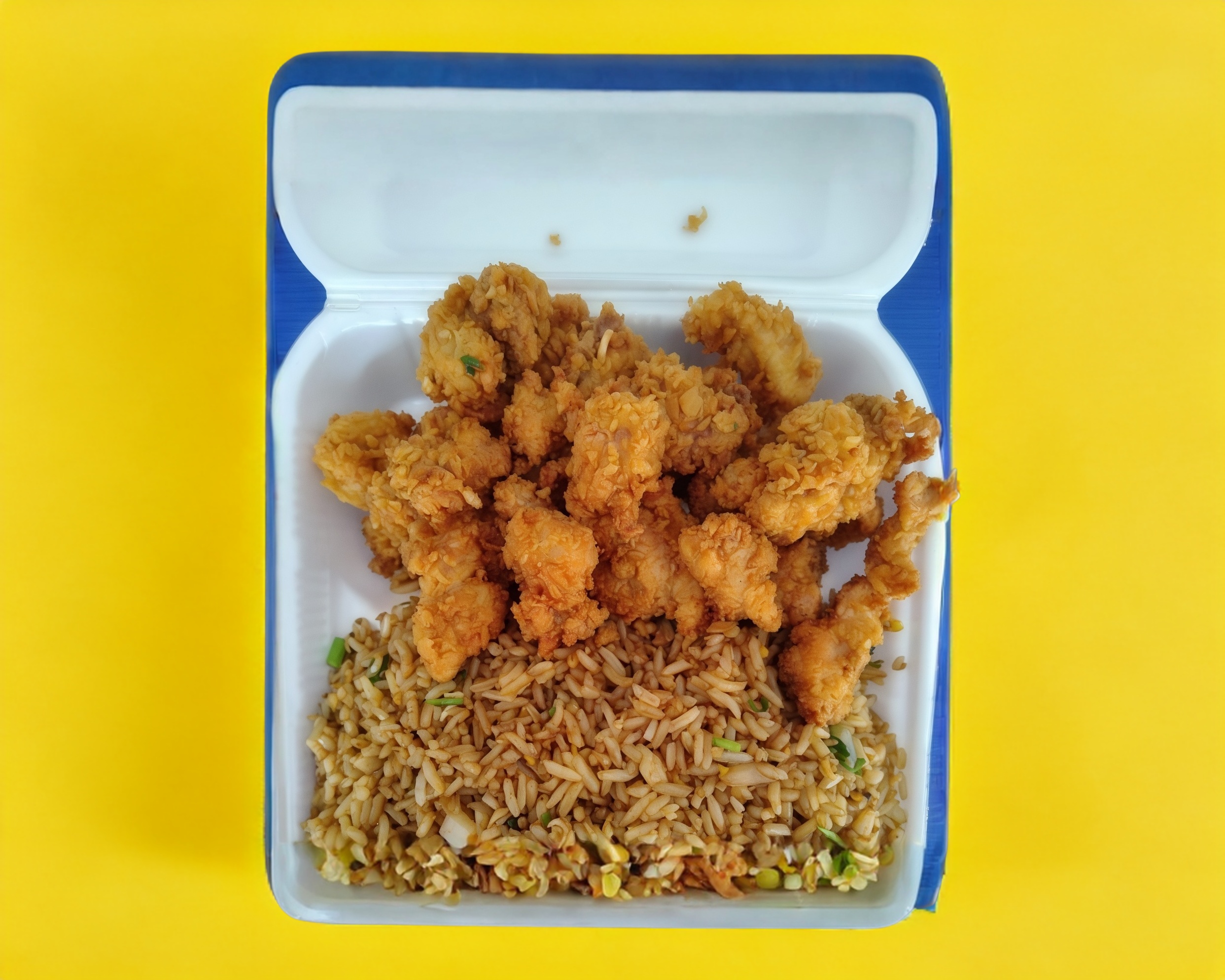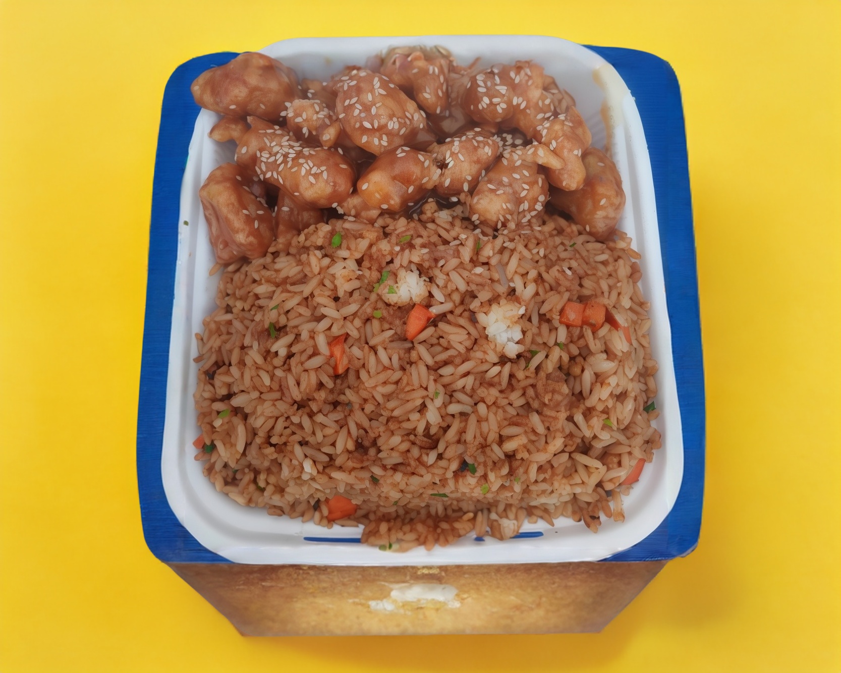 200 GM de pollo capeado, bañado con salsa a la naranja y ajonjolí