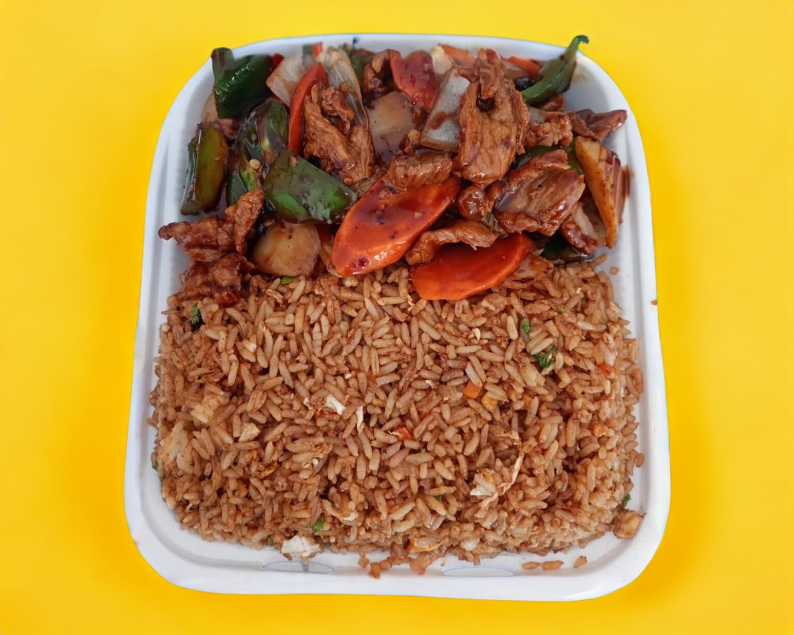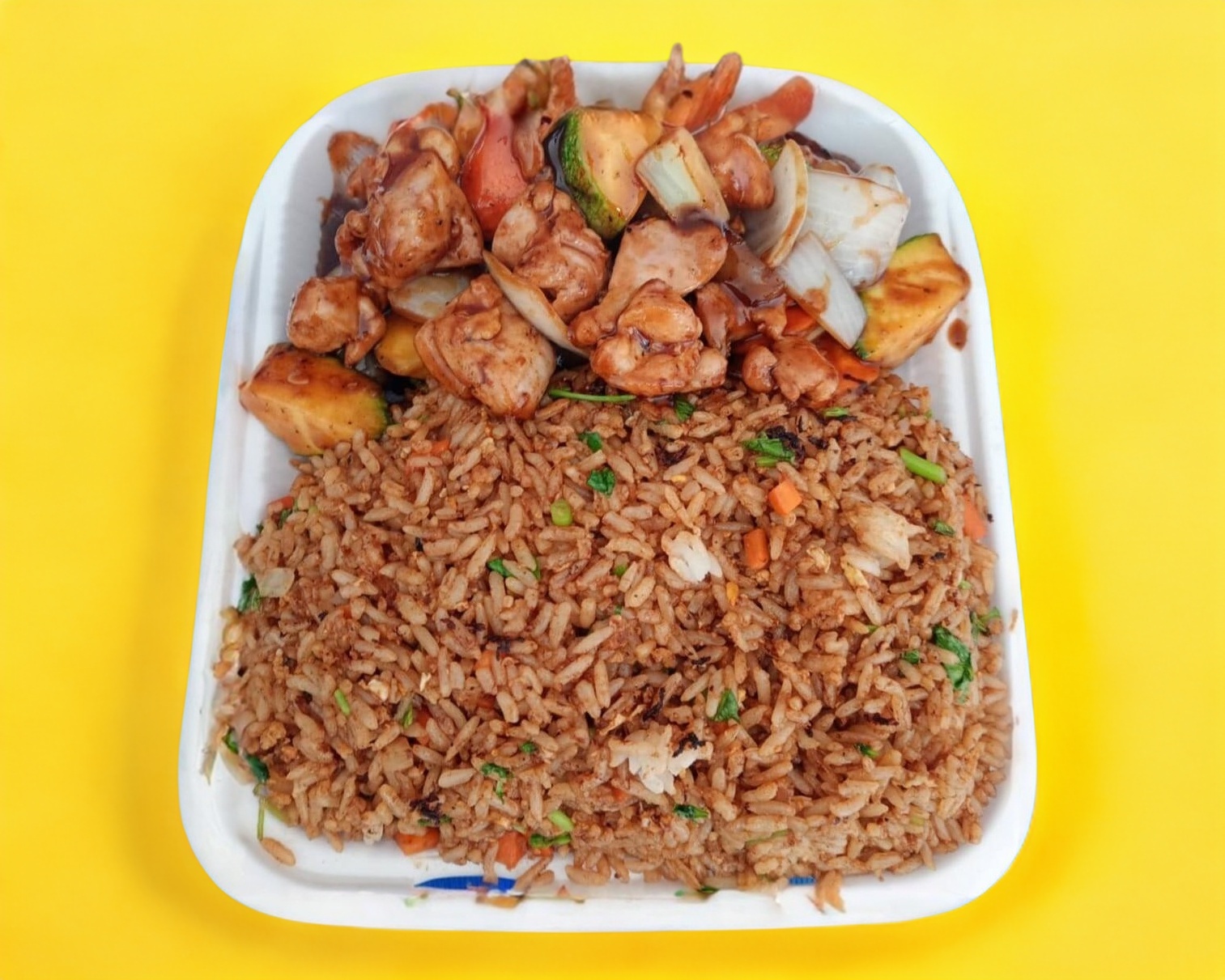 200 GM de pollo, salteado con verduras chile jalapeños y salsa soja