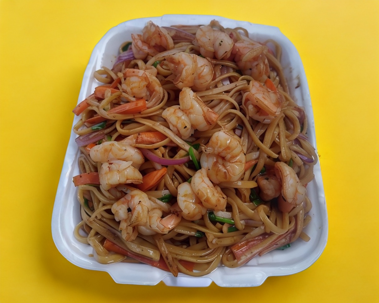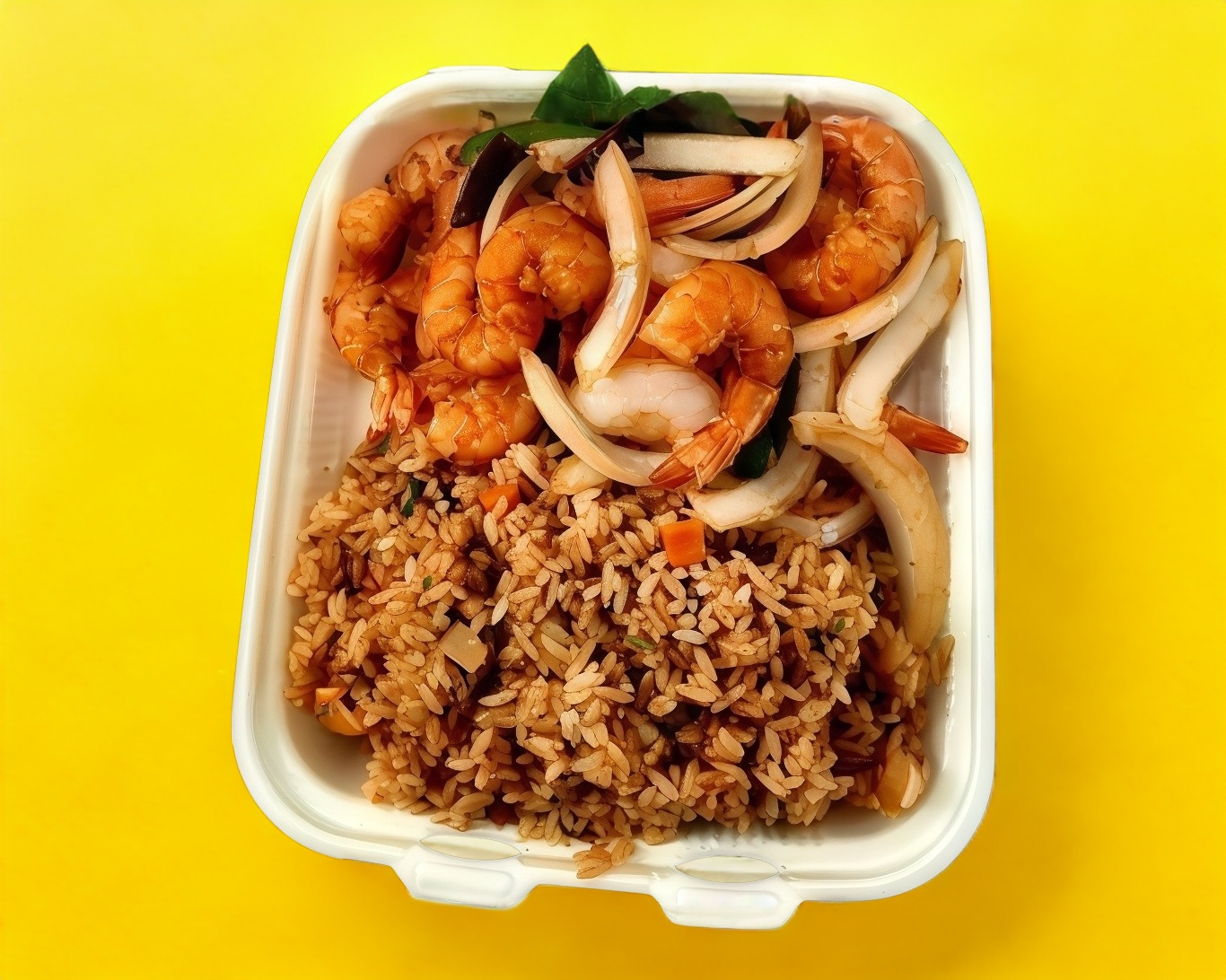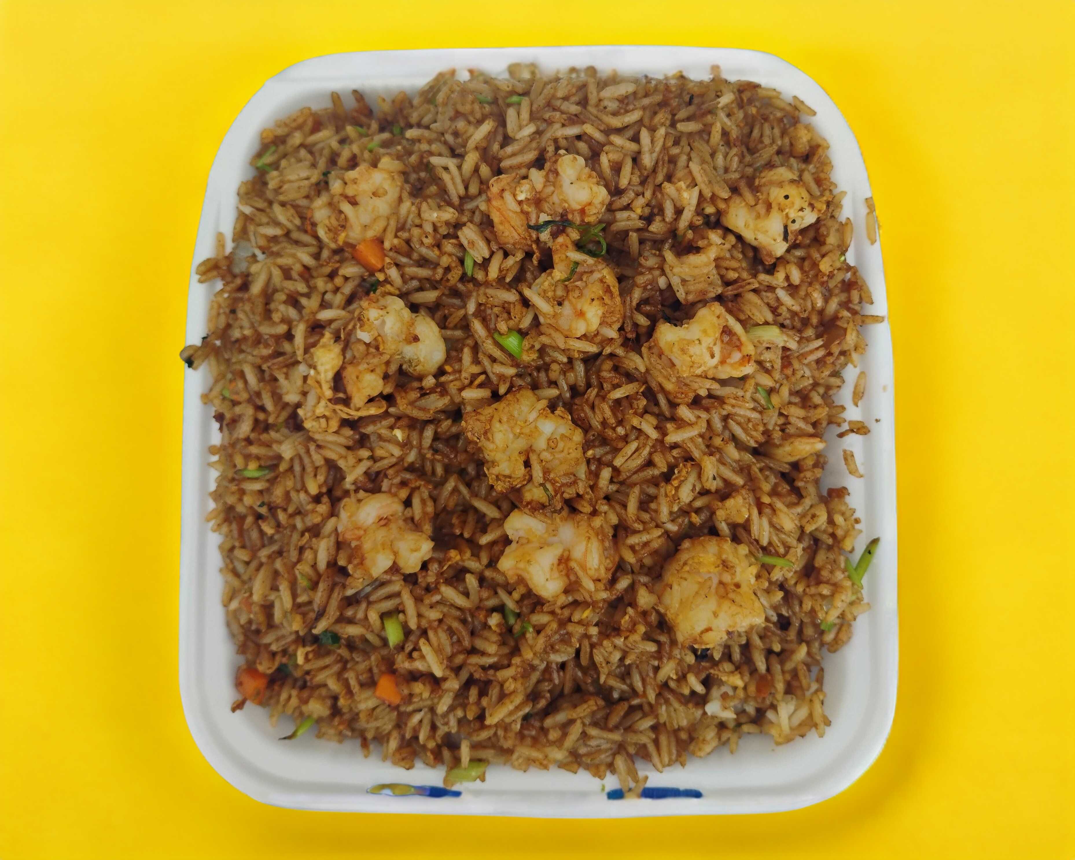 500 Gr de Arroz con verdura salteado con Camarones y salsa soya