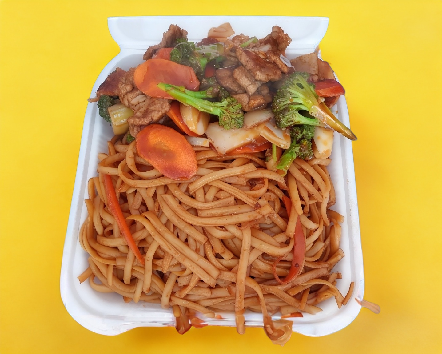 200 GM de pollo, salteado con verduras, zanahorias, ceboola, brocoli y salsa soja
