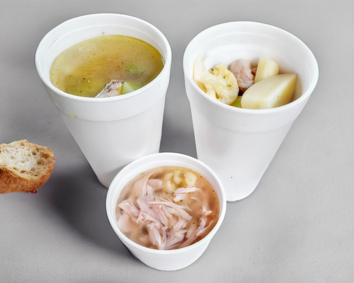Consomé con arroz verdura y pollo desmenuzado. Rinde 500 ml
