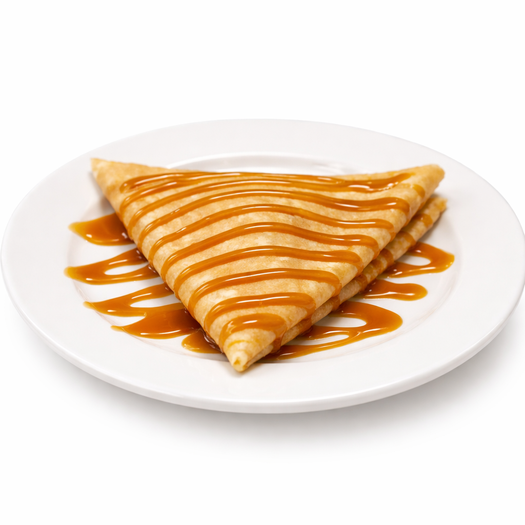 Suave crepa recién preparada, rellena y bañada con deliciosa cajeta, de sabor dulce y cremoso que se derrite en cada bocado. Ideal para disfrutar un antojo tradicional e irresistible.