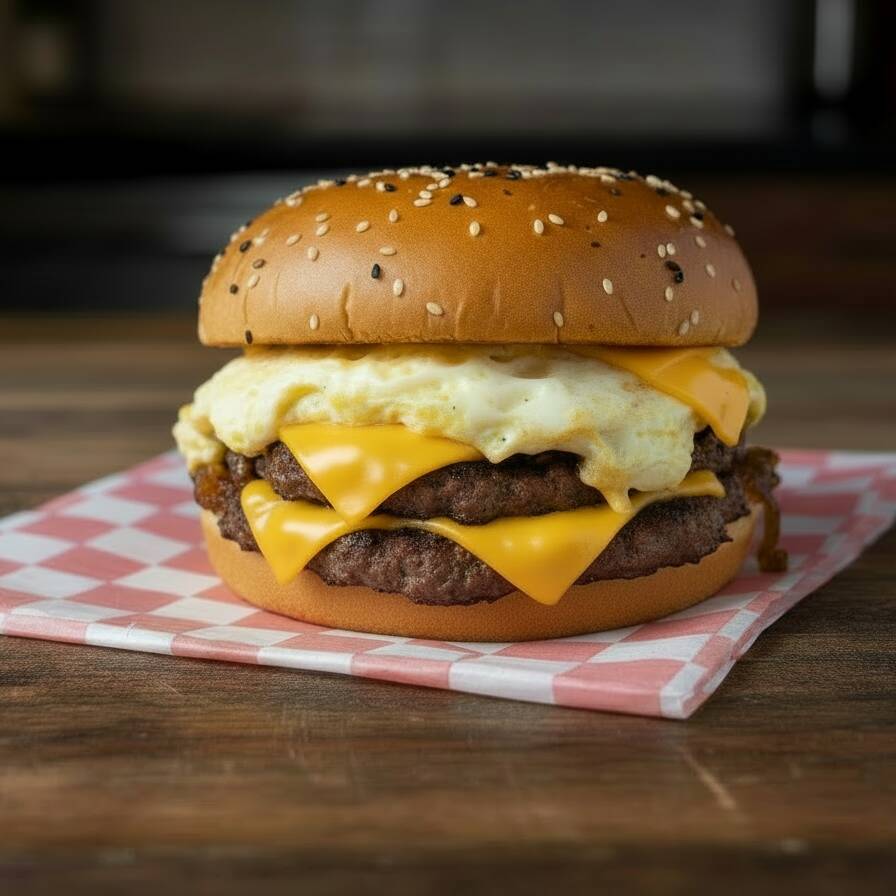 Doble carne de res (250g), doble queso amarillo, queso oaxaca, aderezo de la casa.