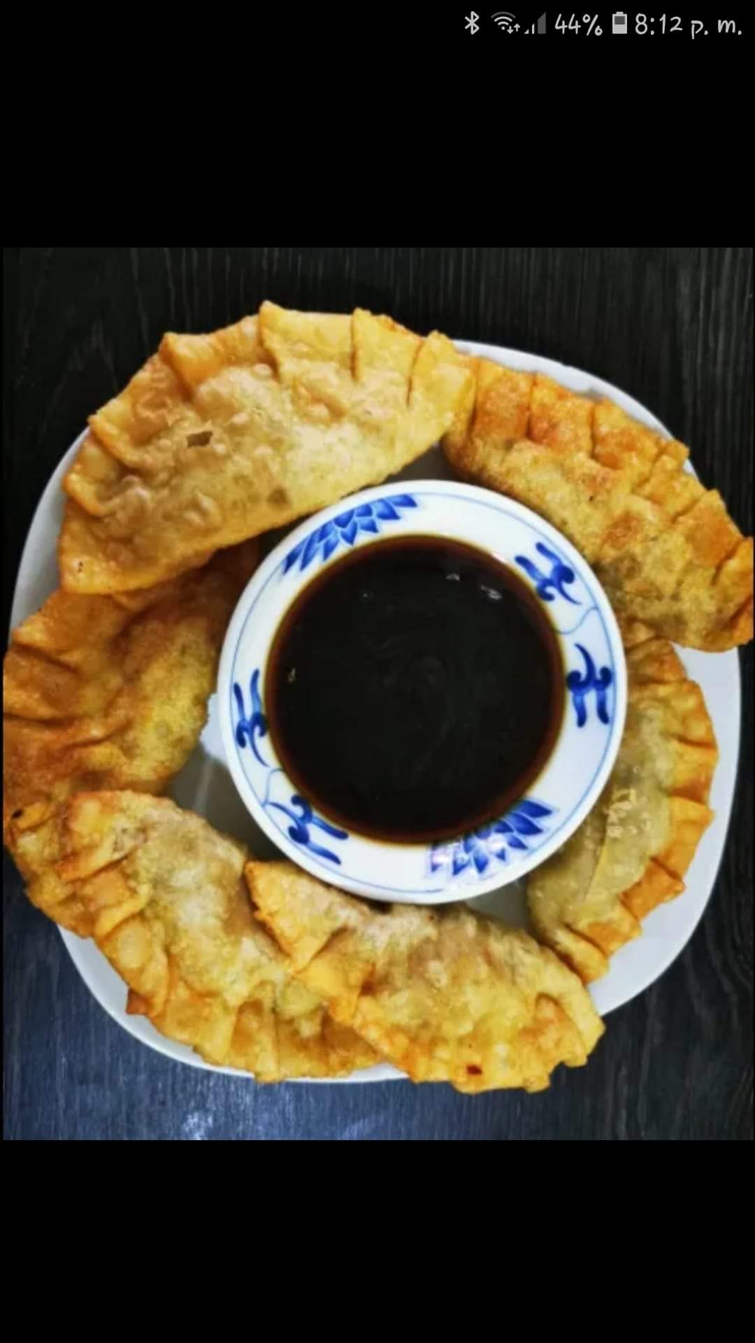 Tortilla hecha con harina de trigo ( 5 piezas) lleno de verduras y carne molida de cerdo y de res ( 10 gramos aprox por pieza)