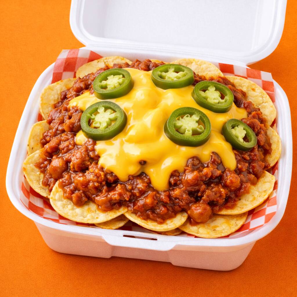 Tus papas favoritas preparadas con nuestro Chili con Carne Texas (carne molida de cerdo, salchicha y frijoles sazonados). Crema, Queso Blanco Rallado, Queso de nachos y coronado con Jalapeños. ¡Pruébalos con Tostitos Verdes, Tostitos Flamin' o Doritos!
