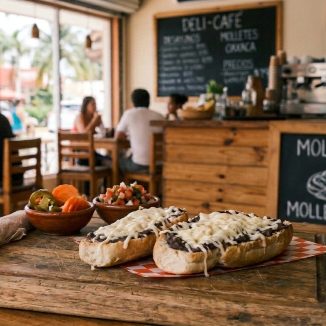 2 pzas de molletes naturales(frijol y queso oaxaca), con pico de gallo y jalapeños.