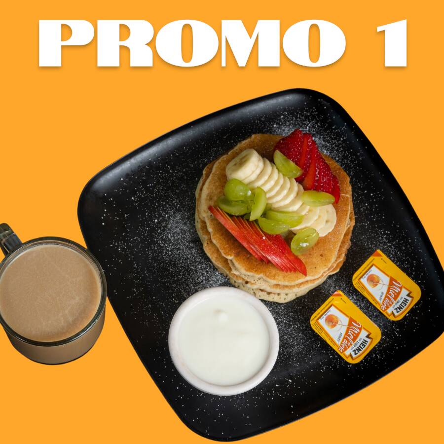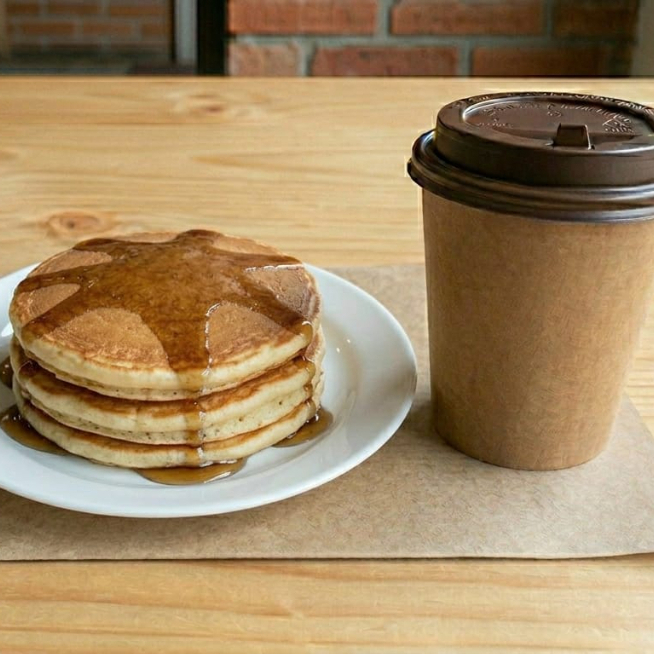 Incluye 3 pz de Hot Cakes esponjosos + 1 bebida del dia a elegir.