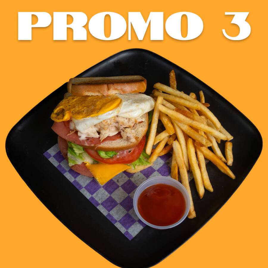 Preparada en 3 pisos con Huevo, jamon, pollo desmenuzado, tocino, lechuga, tomate, aguacate, Mayonesa y frijol.