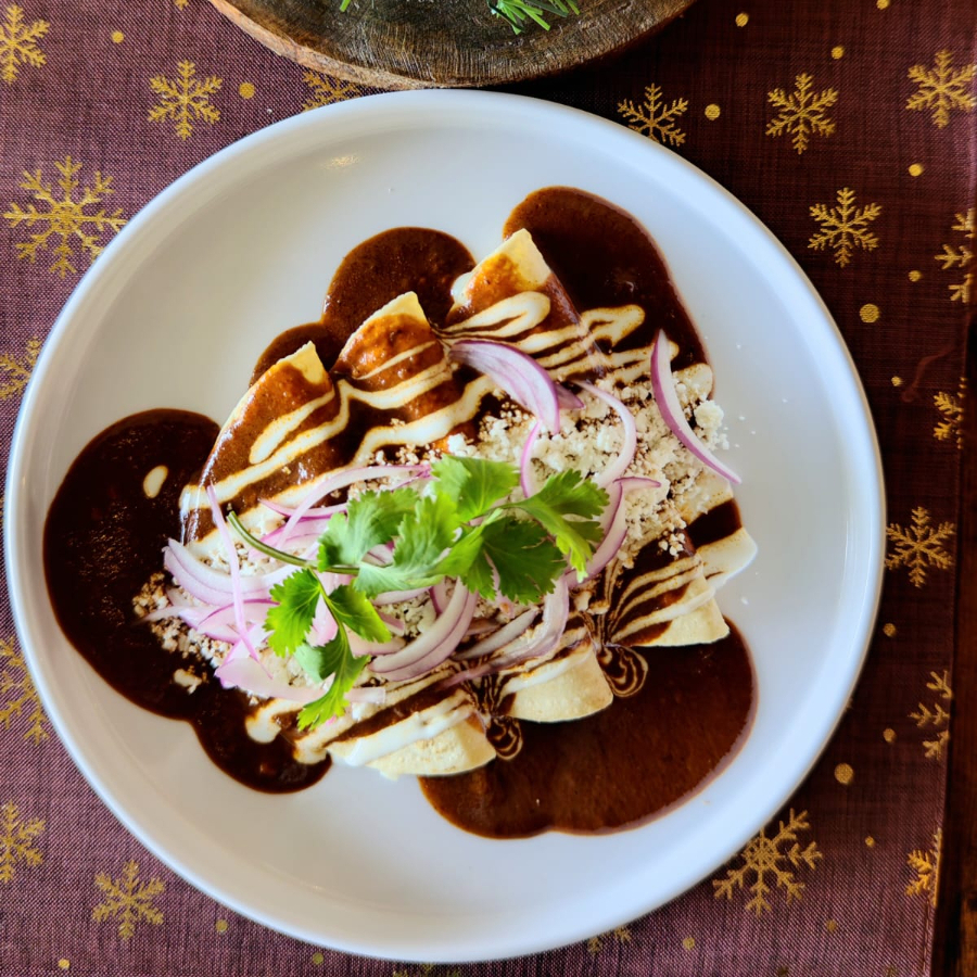Chilaquiles rojos, acompañado de 2 huevos y frijol.