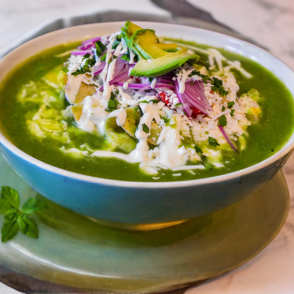 Crema, queso, cilantro, cebolla morada,y frijoles. Sasla y proteína a elegir.