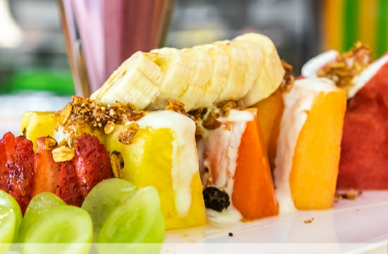 Sandia, piña, melon, papaya, acompañado de yogurth, miel y granola.