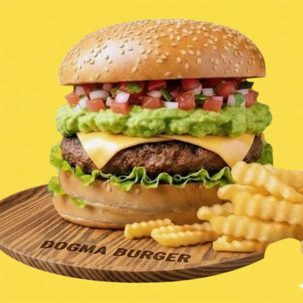 Rica carne de la casa acompañado de sus vegetales frescos lechuga, mexicana, guacamole, queso americano fundido. Incluye una porción de papas hechas en casa 🍔🍟