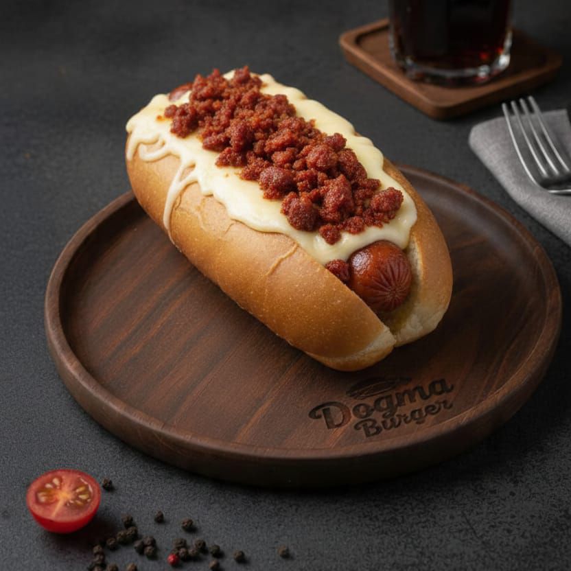Rico pan con salchicha asada cubierta de queso oaxaca derretido y choriso frito Incluye papas