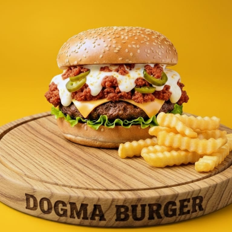 Rica carne de la casa, queso americano fundido, chorizo con queso Oaxaca derretido, acompañado de su vegetales frescos lechuga, tomate, cebolla caramelizada con jalapeños, aderezo de la casa. Incluye papas 🍔🍟