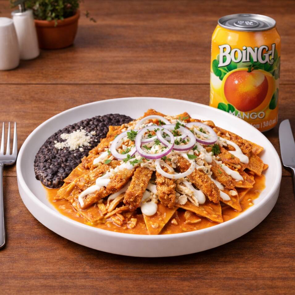 Chilaquiles Cremosos Suzos*1 + Milanesa Empanizada*1 + Boing de Lata 355 ml.*1