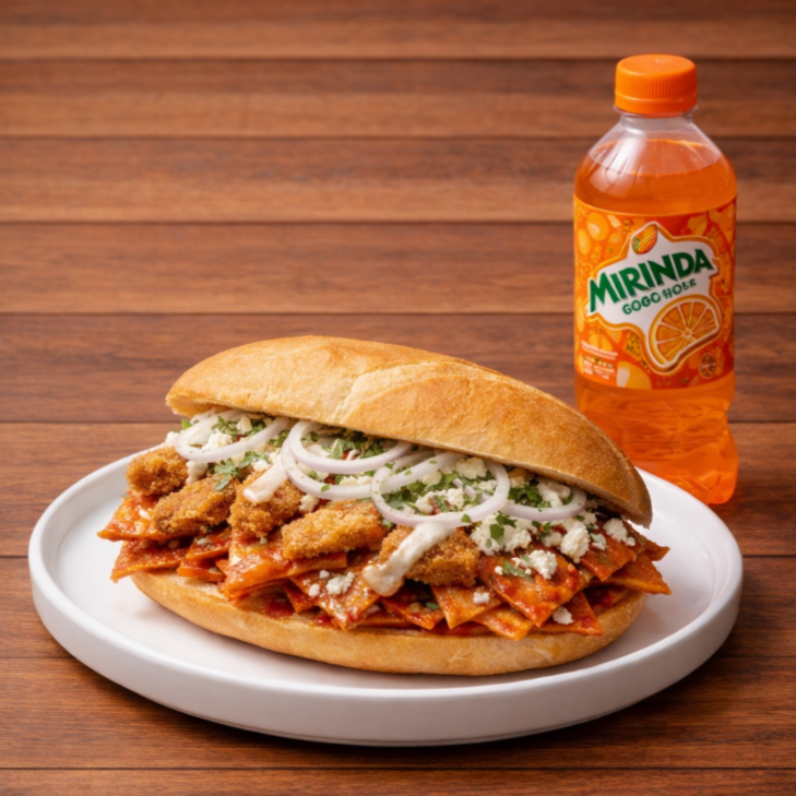 Torta de Chilaquiles Clásicos Verdes*1 + Milanesa Empanizada*1 + Refresco Pepsi Sabores 600 ml.*1