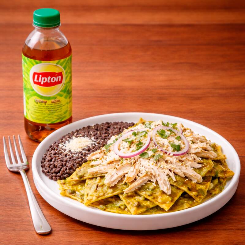 Chilaquiles Rojos*1 + Pollo*1 + Té Verde Lipton PET (600 ml.)*1