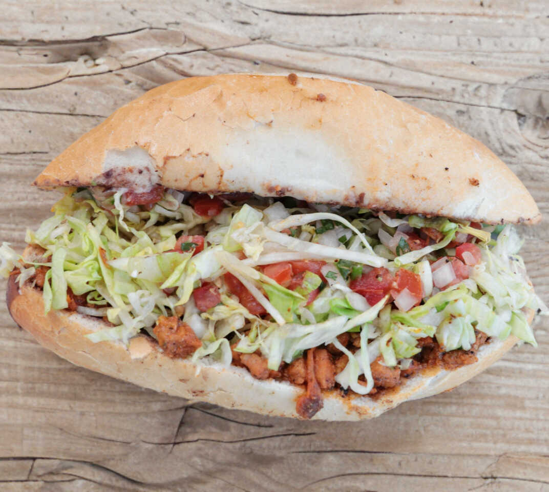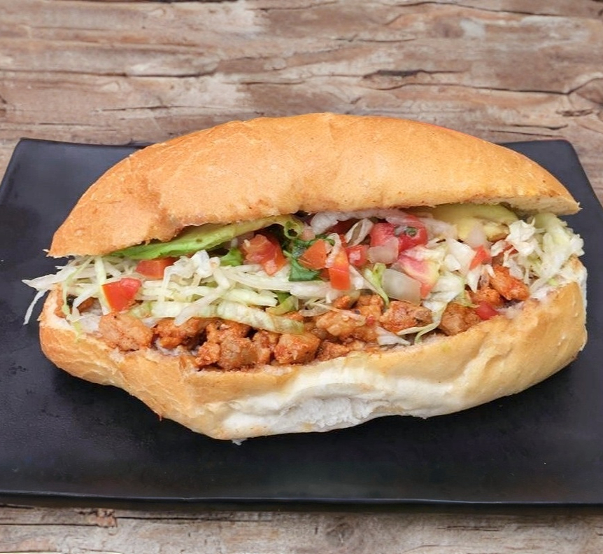 Deliciosa torta preparada con mayonesa, frijol, guisado de su preferencia, lechuga, aguacate y salsa mexicana.