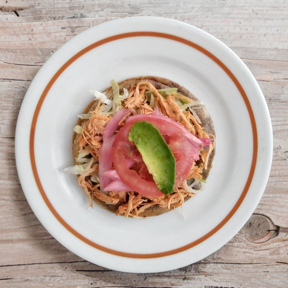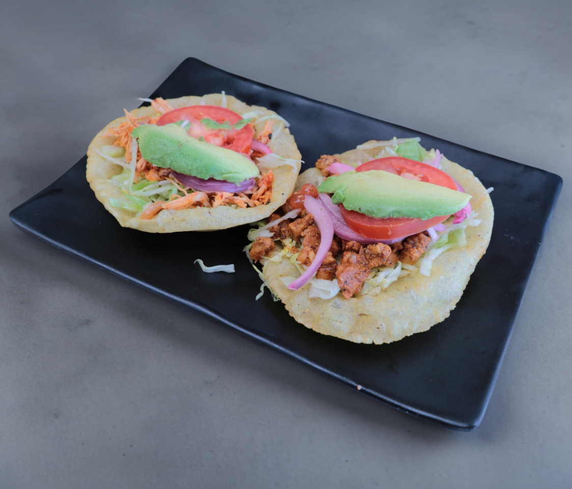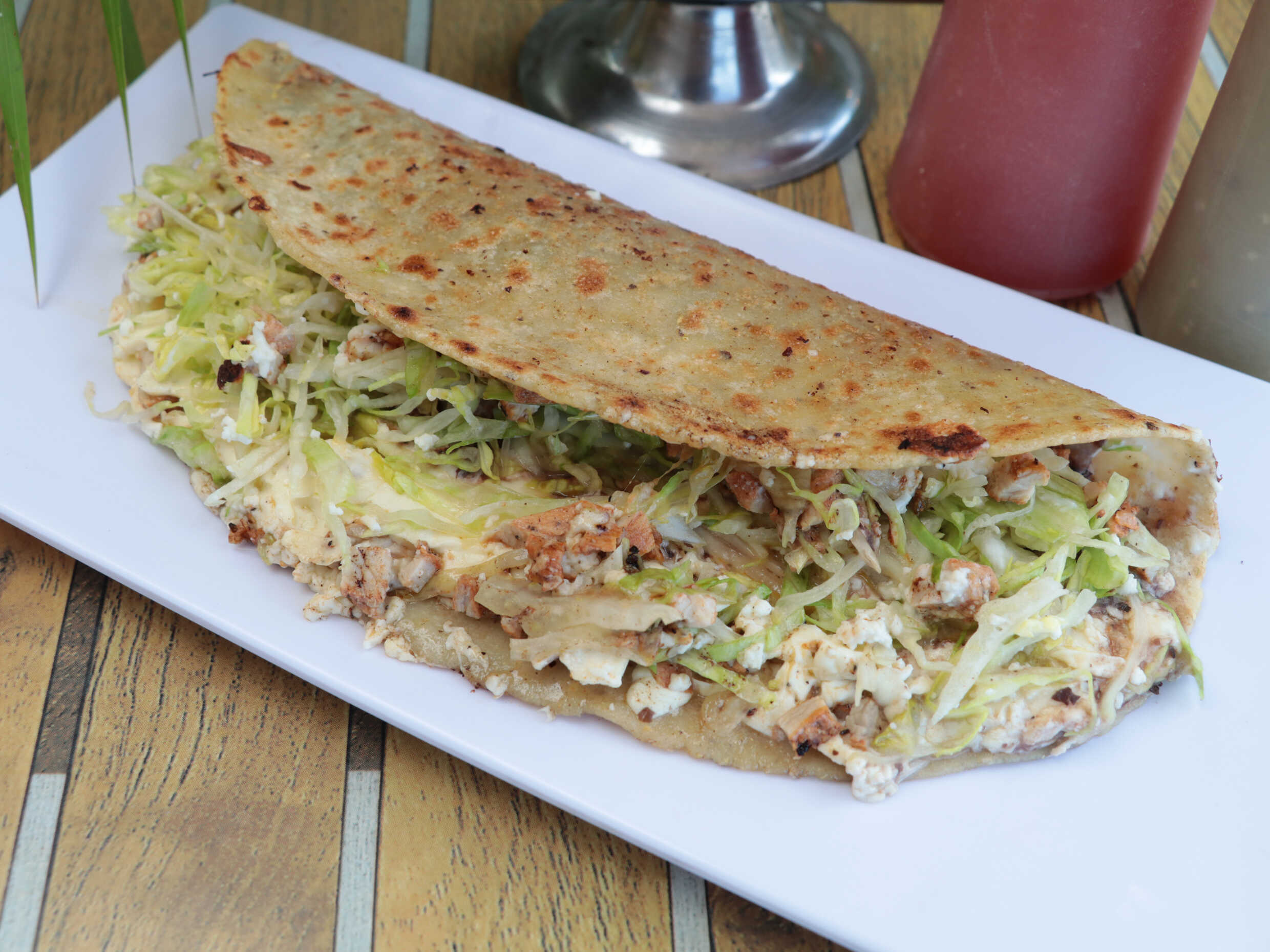 TORTILLA DE MAÍZ HECHA A MANO CON TU GUISADO FAVORITO, FRIJOL, LECHUGA, QUESO OAXACA, QUESO FRESCO Y CREMA