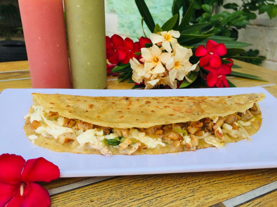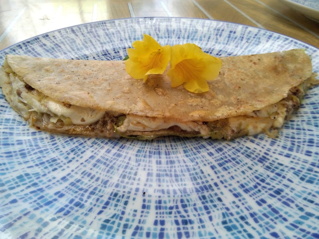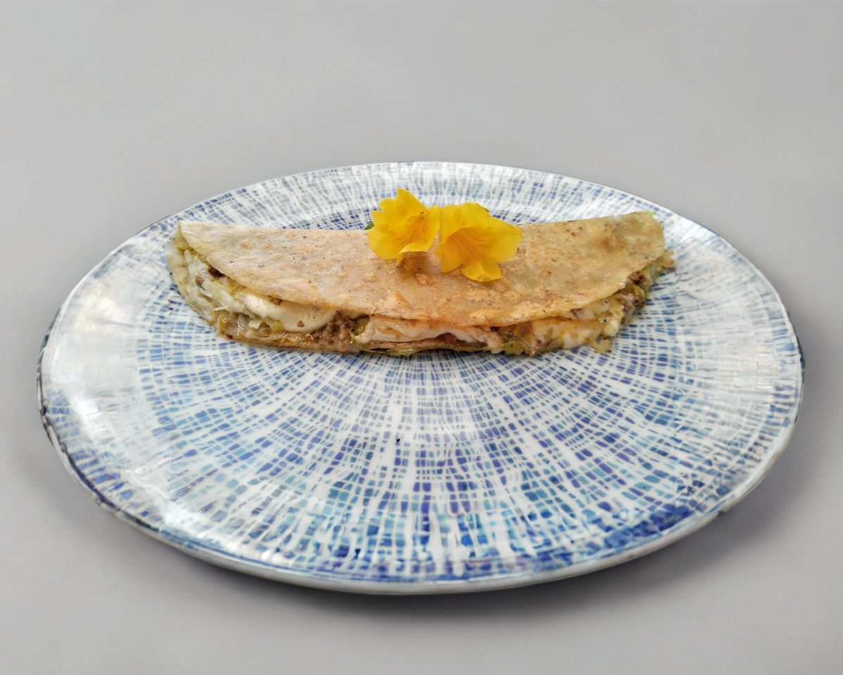TORTILLA DE MAÍZ HECHA A MANO CON TU GUISADO FAVORITO, FRIJOL, LECHUGA, QUESO OAXACA, QUESO FRESCO Y CREMA