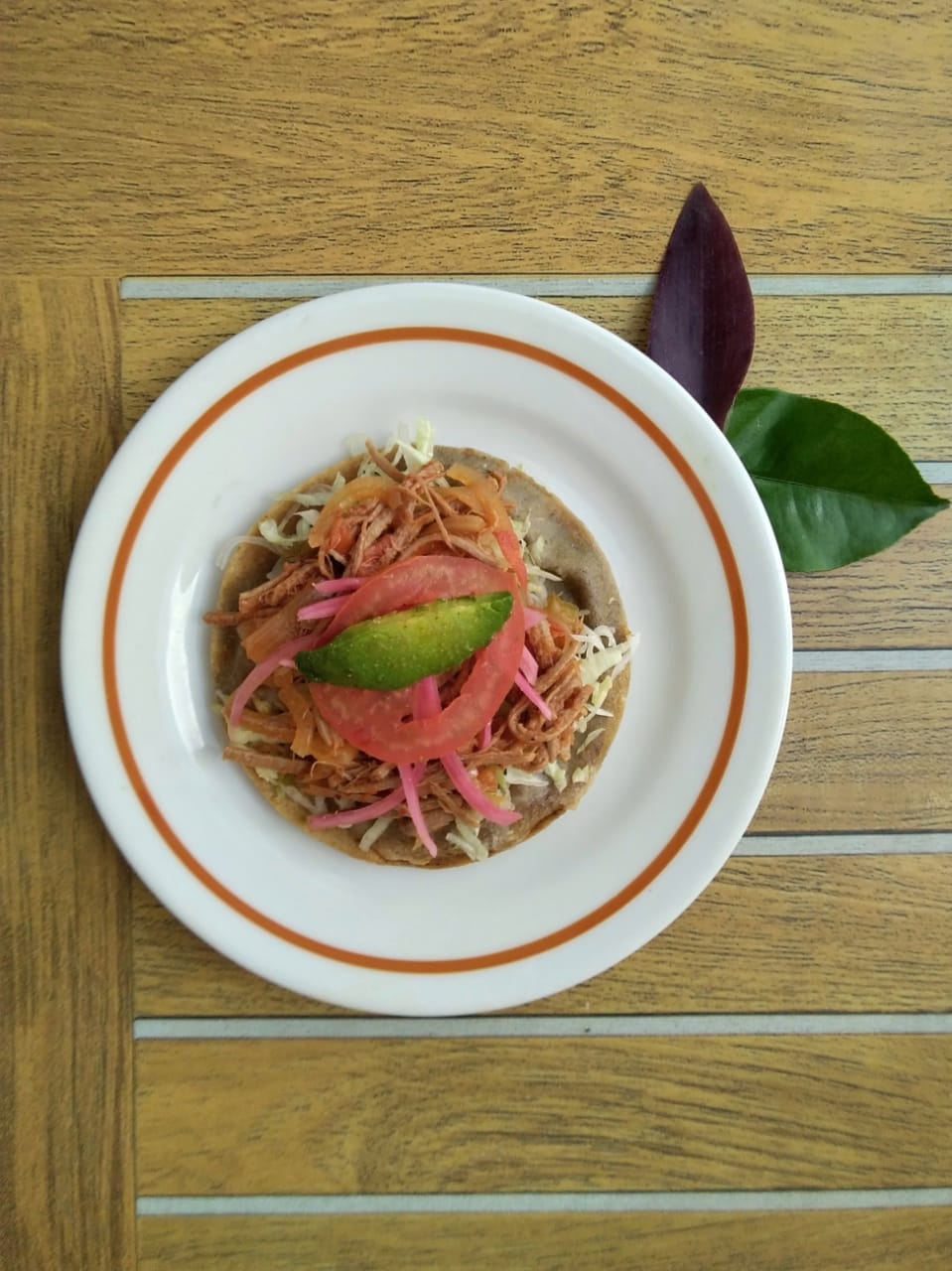 TORTILLA DE MAÍZ RELLENA DE FRIJOL CON TU GUISDO FAVORITO, LECHUGA, CEBOLLA, TOMATE Y AGUACATE