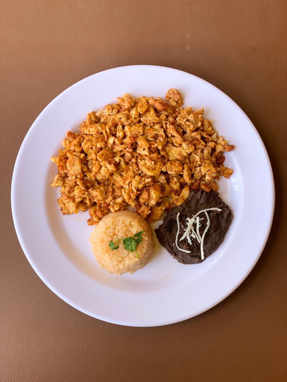 Lleva arroz y frijoles con salsa incluida