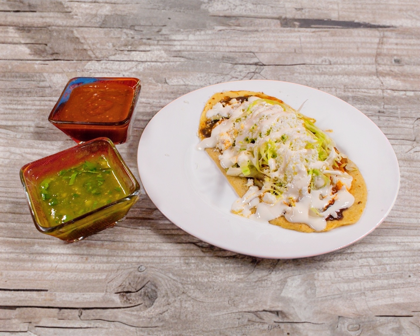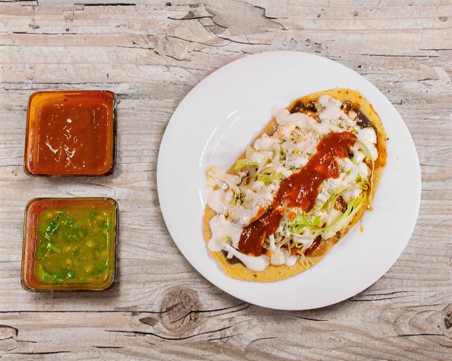 incluye frijoles, lechuga, queso y crema
