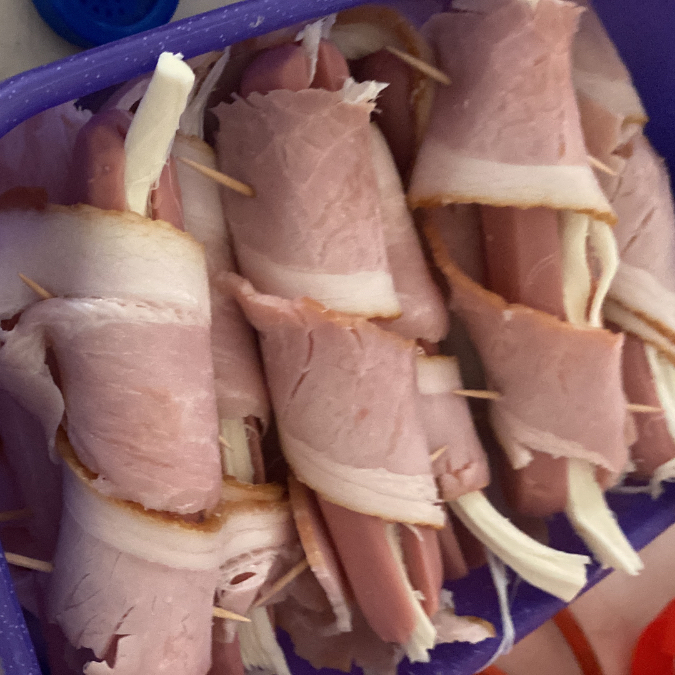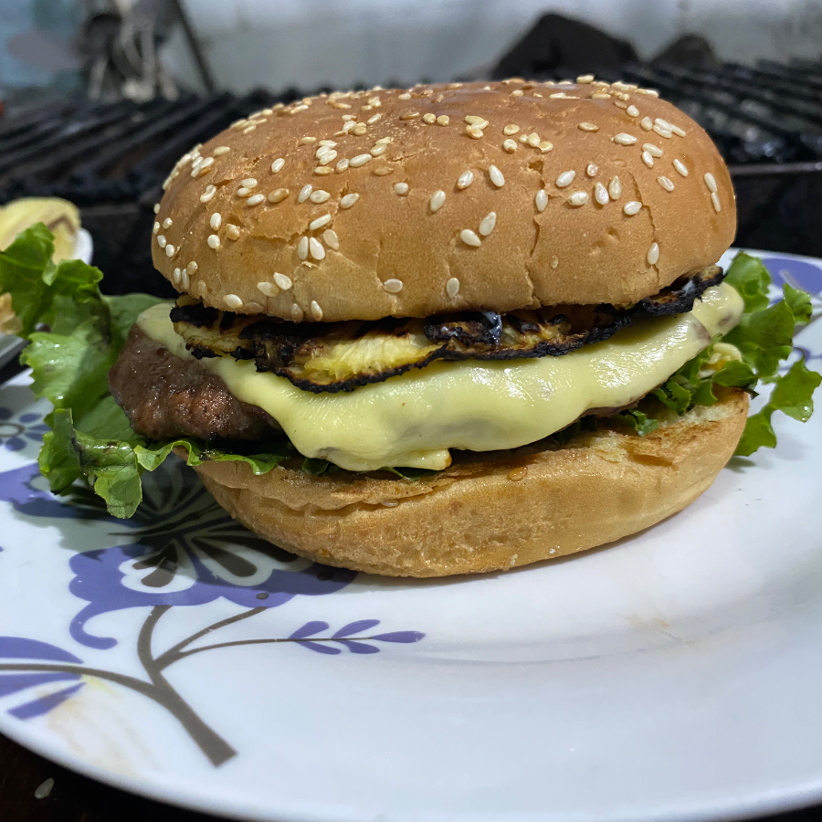 Pan, Dos carnes de la casa, Cebolla, Lechuga, Jitomate Tocino, Queso y pina