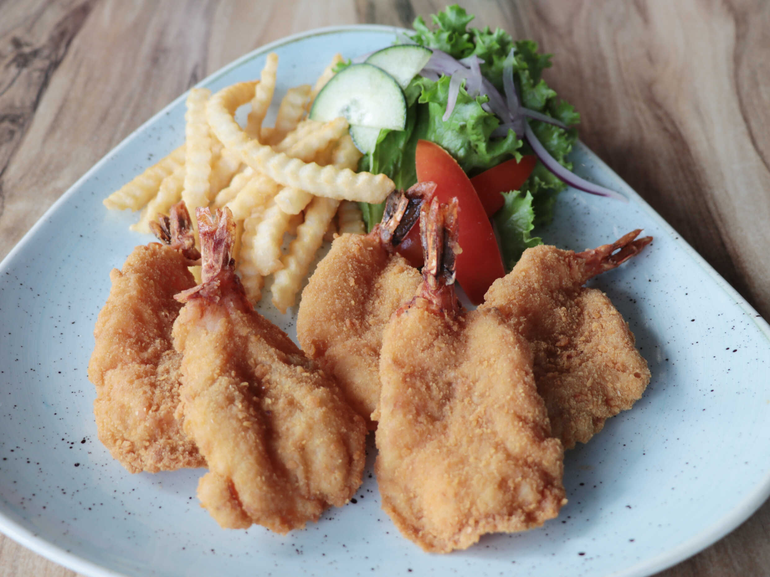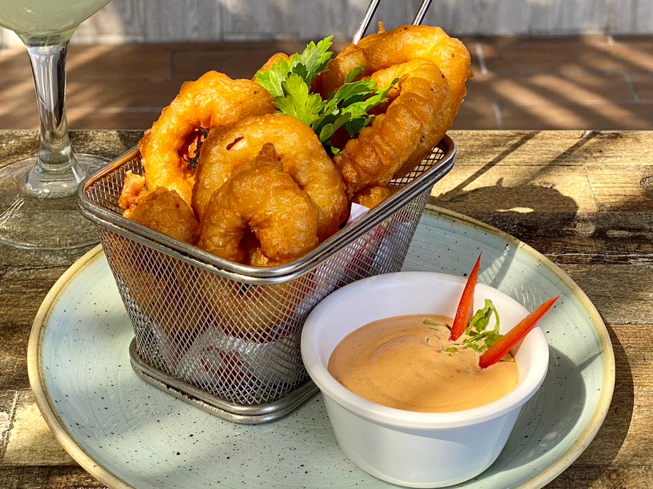 Empanizados con ralladura de coco y aderezo de mango agridulce.