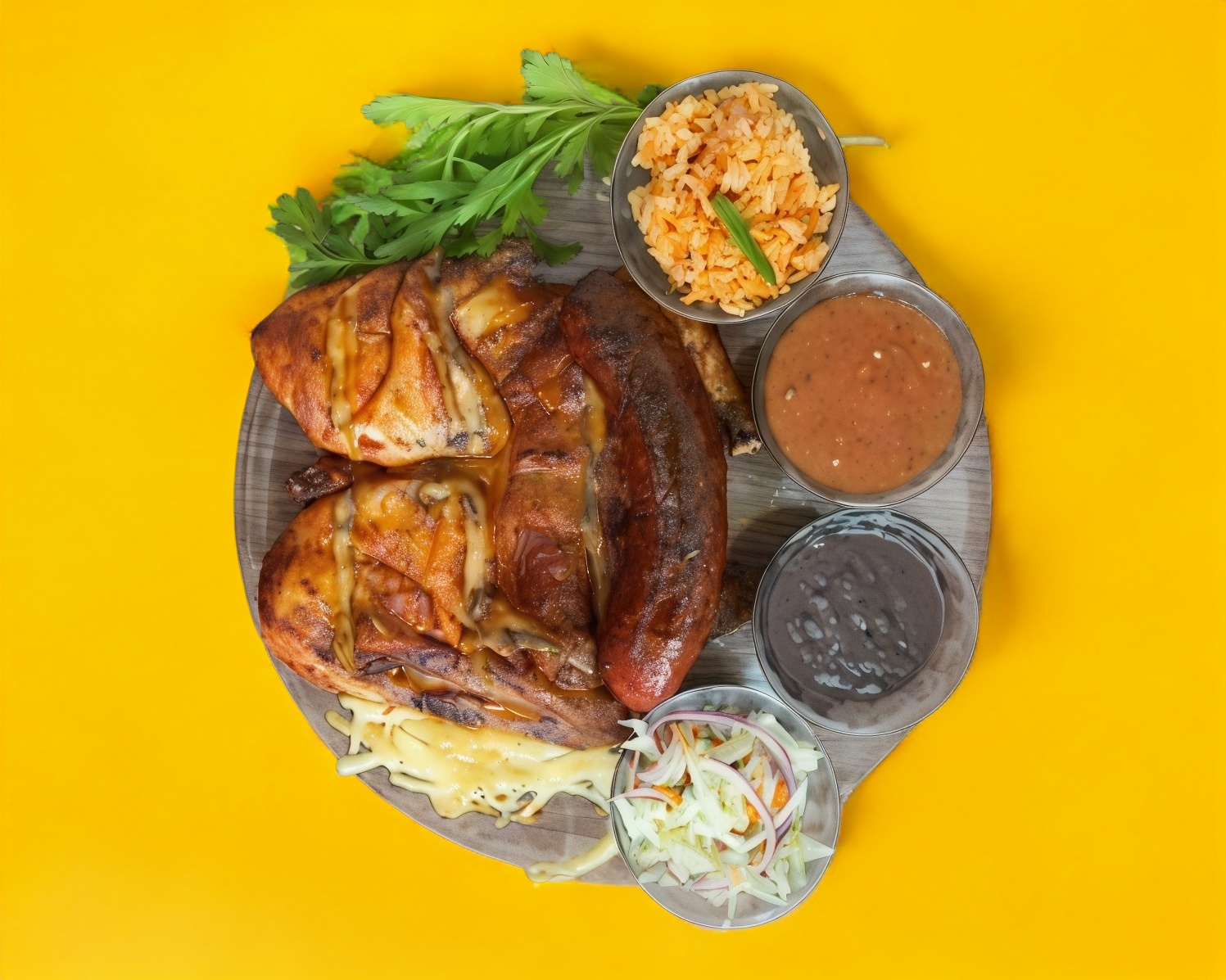 2 Pollos rostizados, 1/2 de tortillas, 1 pieza de chorizo, 1 refresco de Coca Cola 2.5 L, todos nuestros paquetes incluyen arroz, salsa, frijol.