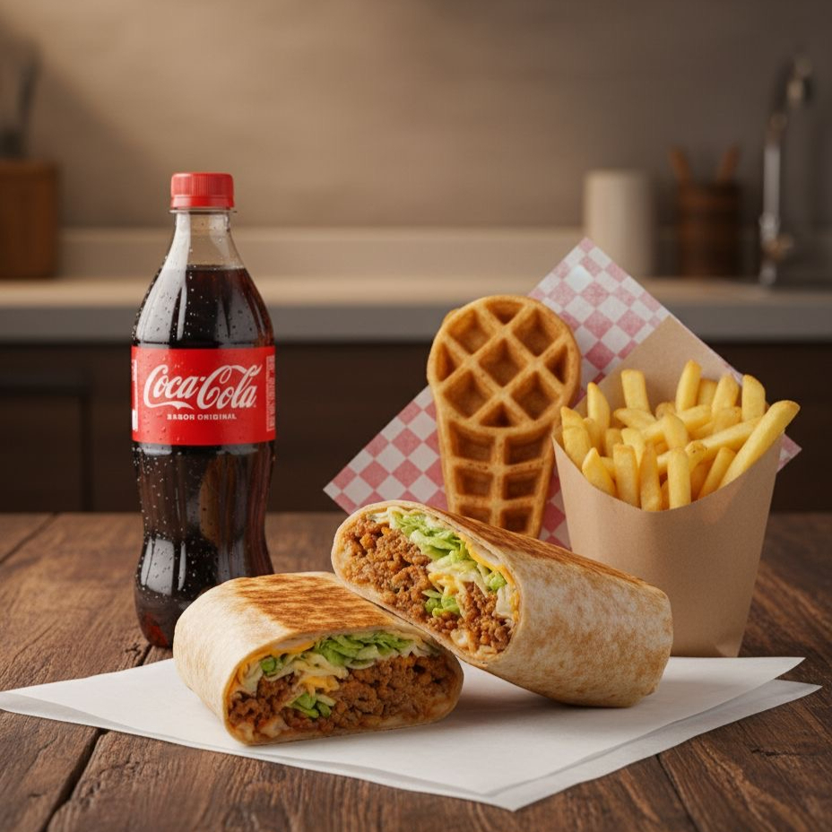 Burrito Campechano*1 + Waffle de Paleta*1 + Coca Cola 600 ml*1 + Orden de Papas*1