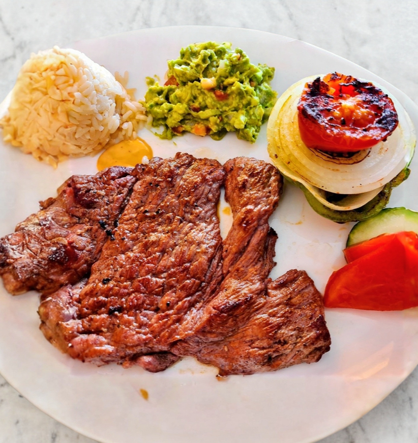 Costilla de res corte delgado, arroz, frijoles, salsa de guacamole y tortillas (si pagas en efectivo te enviamos guarniciones extra o salchichas)
