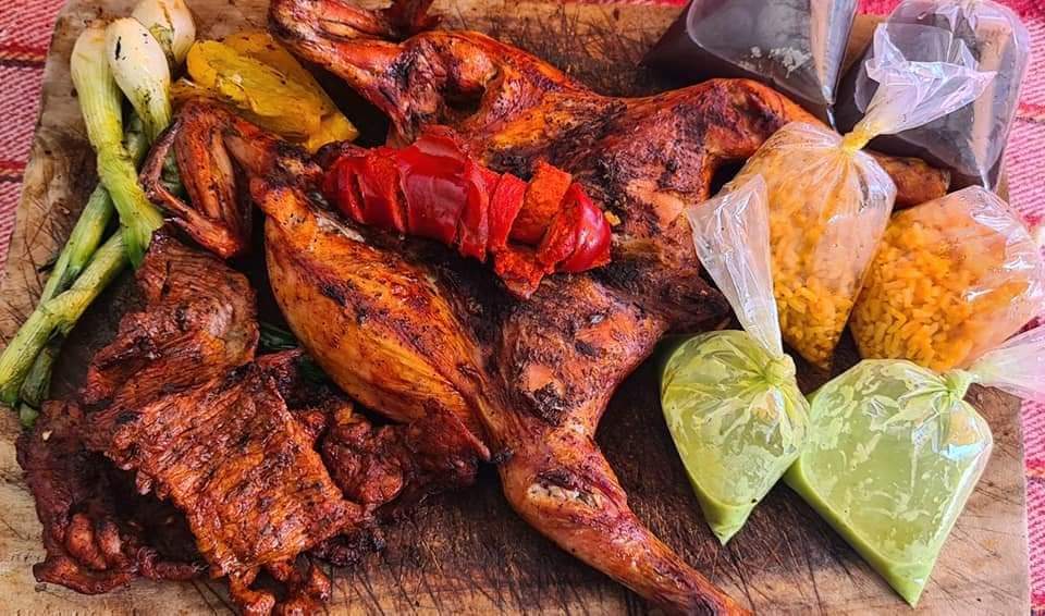 Pollo vip, mix de carne y costilla, doble porción de arroz, frijoles, salsa de guacamole y tortillas, (si pagas en efectivo te enviamos guarniciones extra o salchichas.