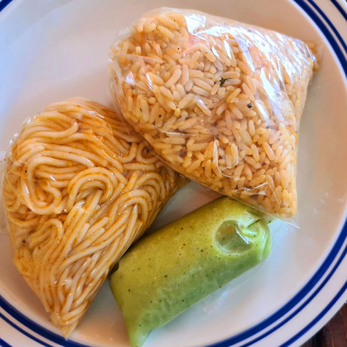 Arroz, fríjoles y salsa de guacamole. NO INCLUYE SPAGHETTI