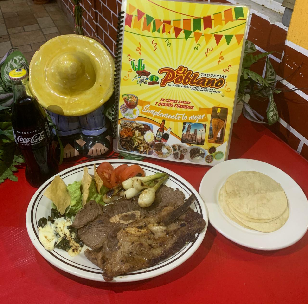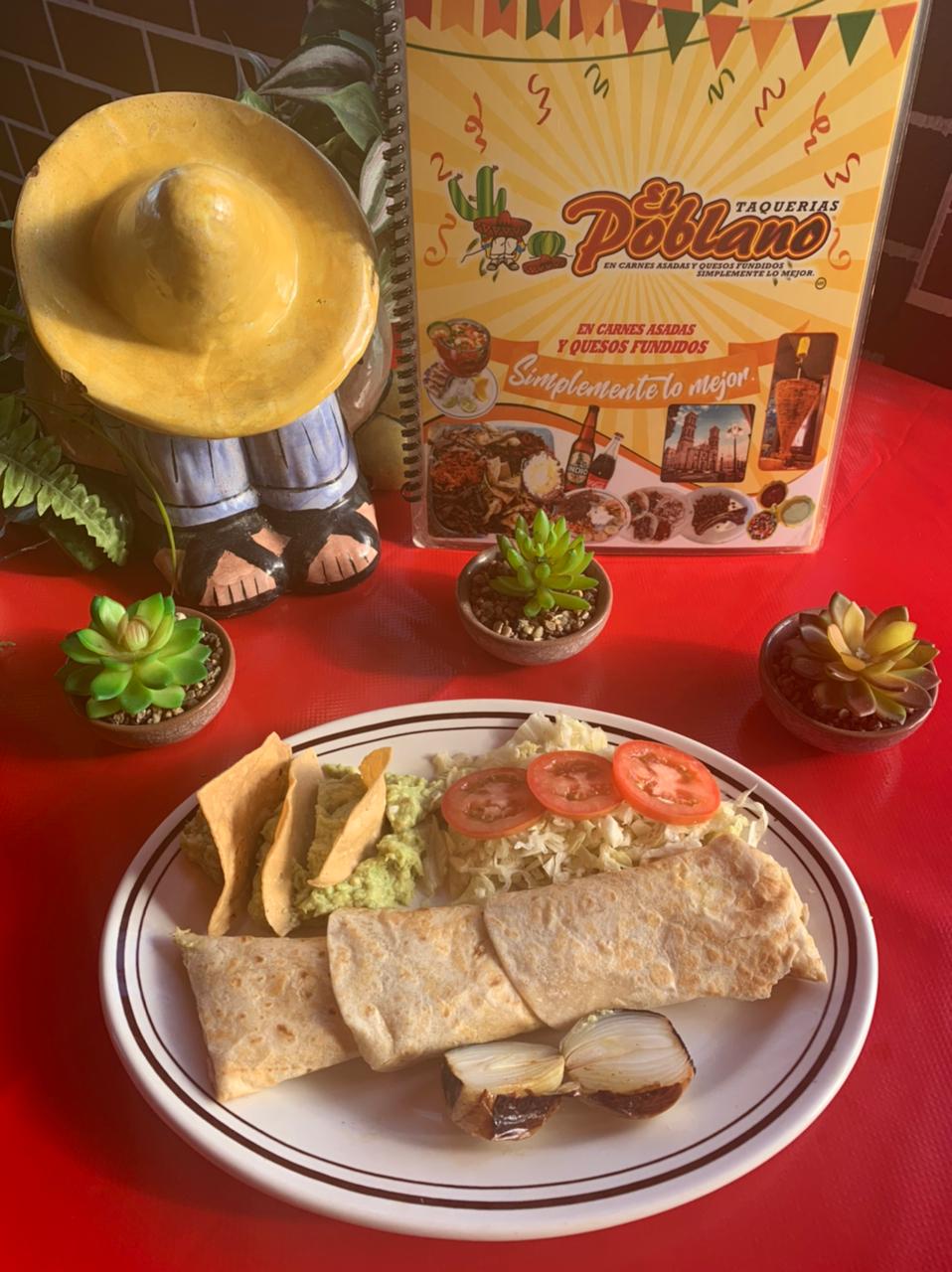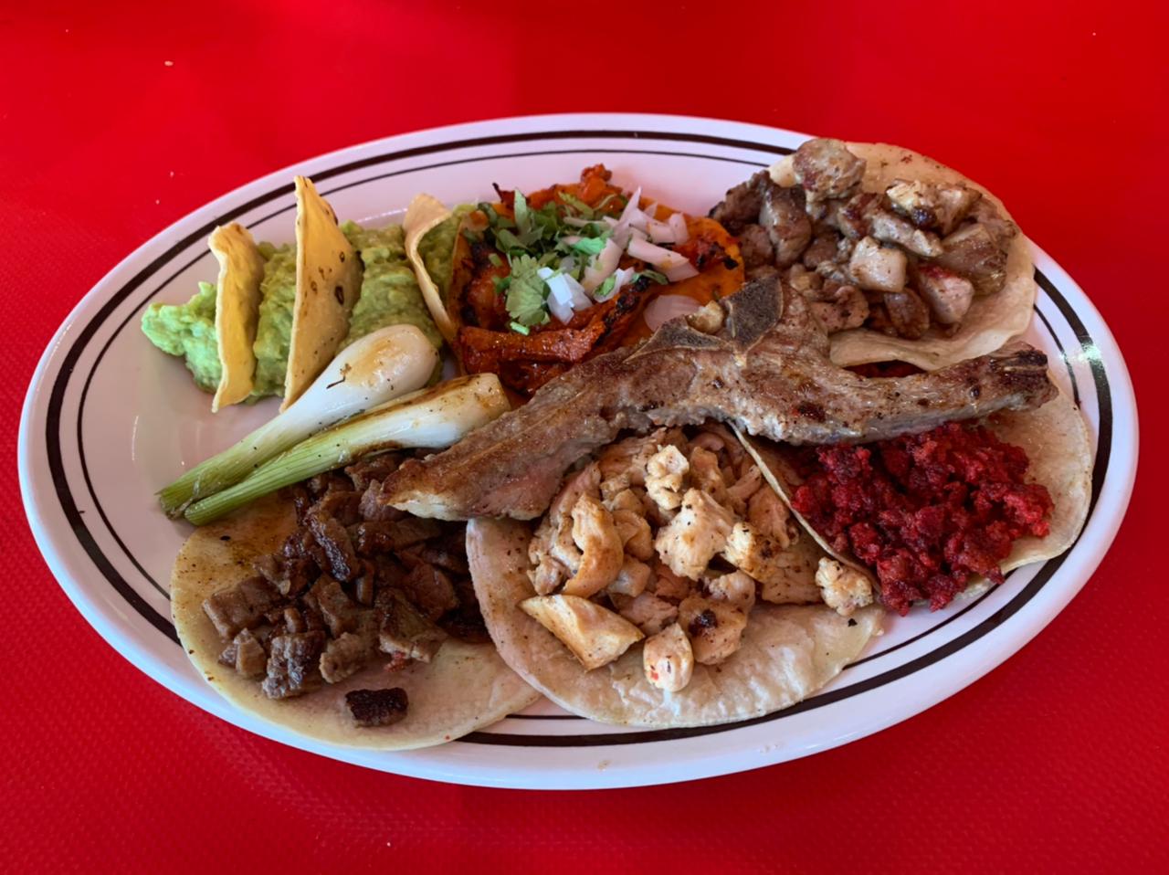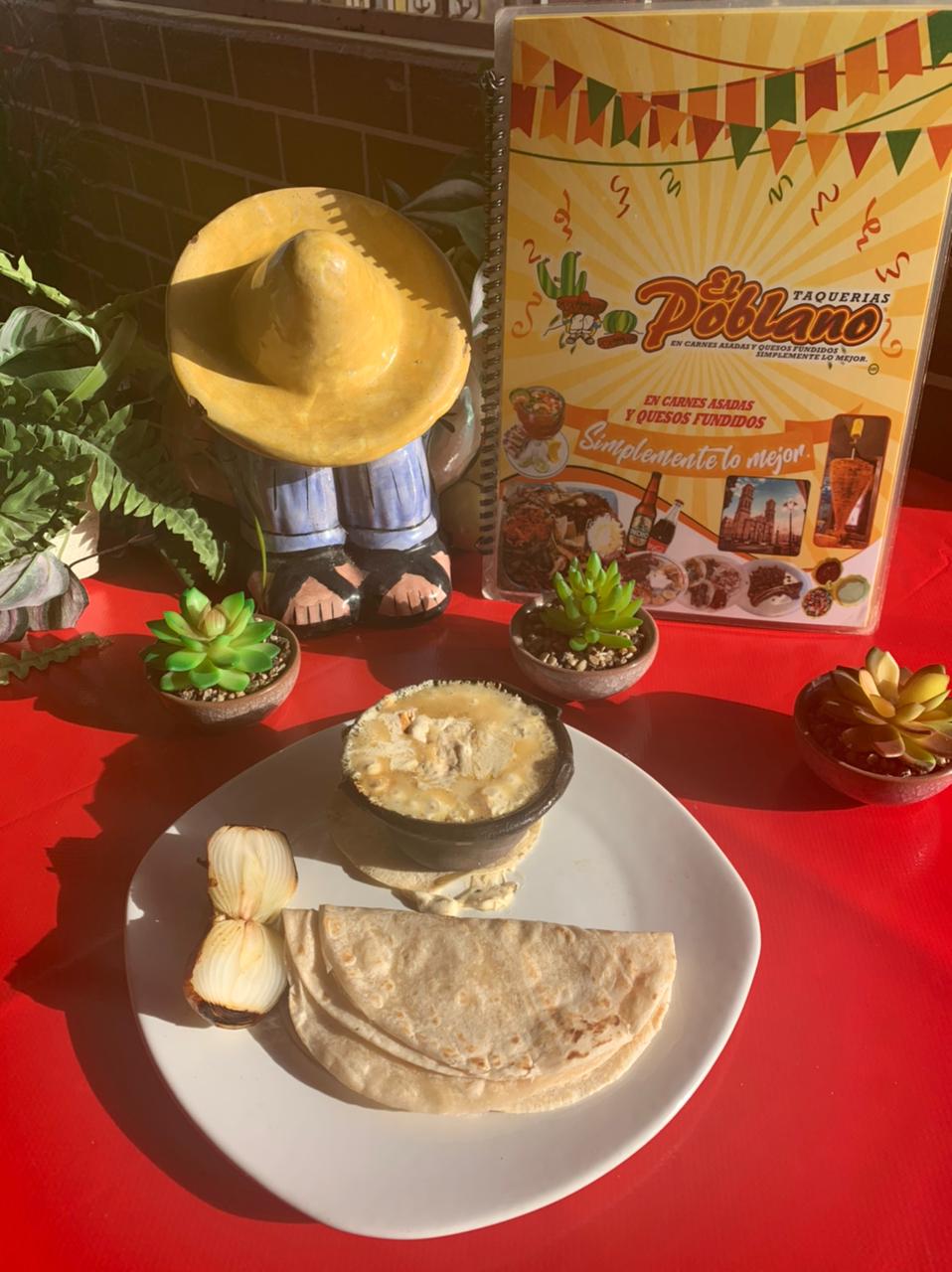 Cebollitascambray , guacamole , frijoles charros y rajas con queso