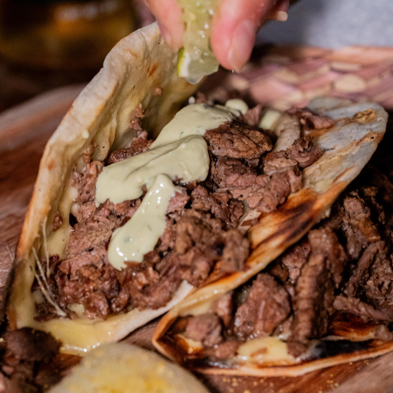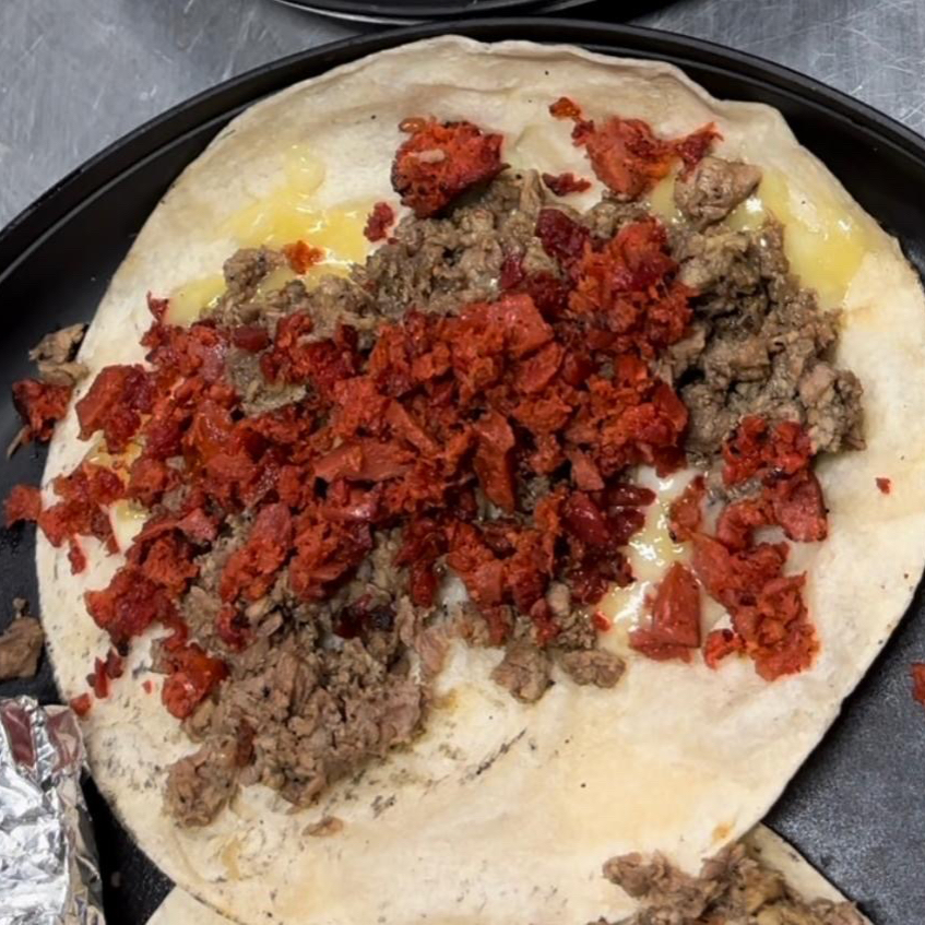 Tortilla de Maíz queso Carne Asada, Chistorra y Salchicha para Asa