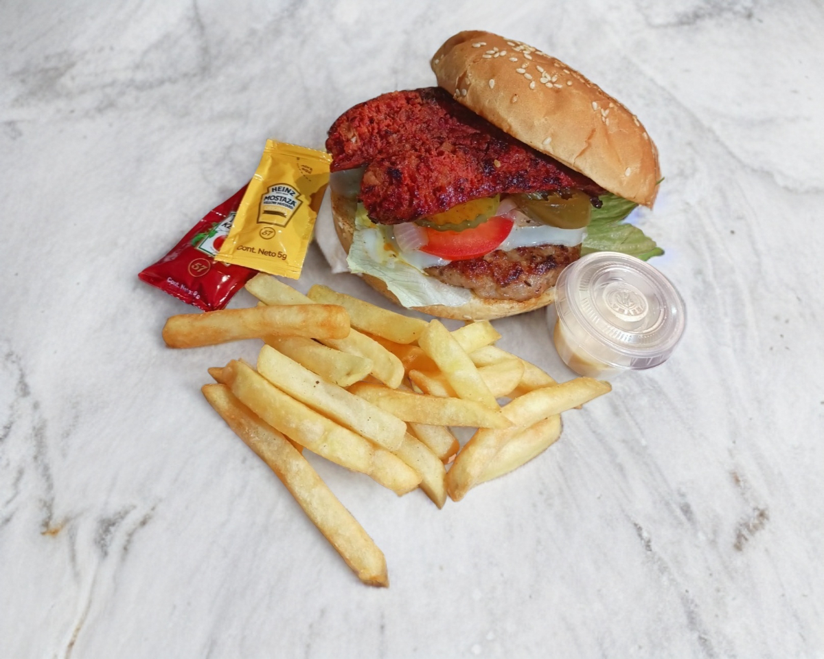 Hamburguesa Doble Carne+Papas+Refresco 400 Ml