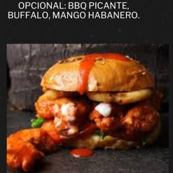 Deliciosos Bonneless de pollo, queso manchego jitomate lechuga cebolla opcional chile jalapeno Pepinillo opcional buffalo mango habanero