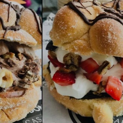 Pan de Muerto C/Sabor a mantequilla de Temporada, Relleno con deliciosa crema batida y fresas o nutella