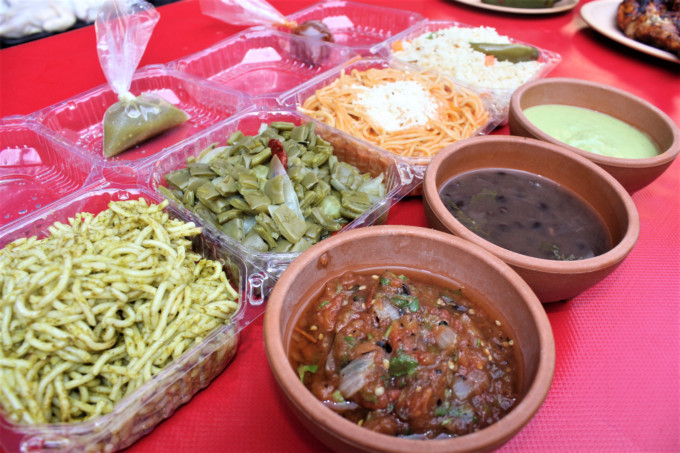 Incluye : frijoles, cebolla asada , salsa verde, salsa roja, chile jalapeño, papas cambray y tortillas a mano