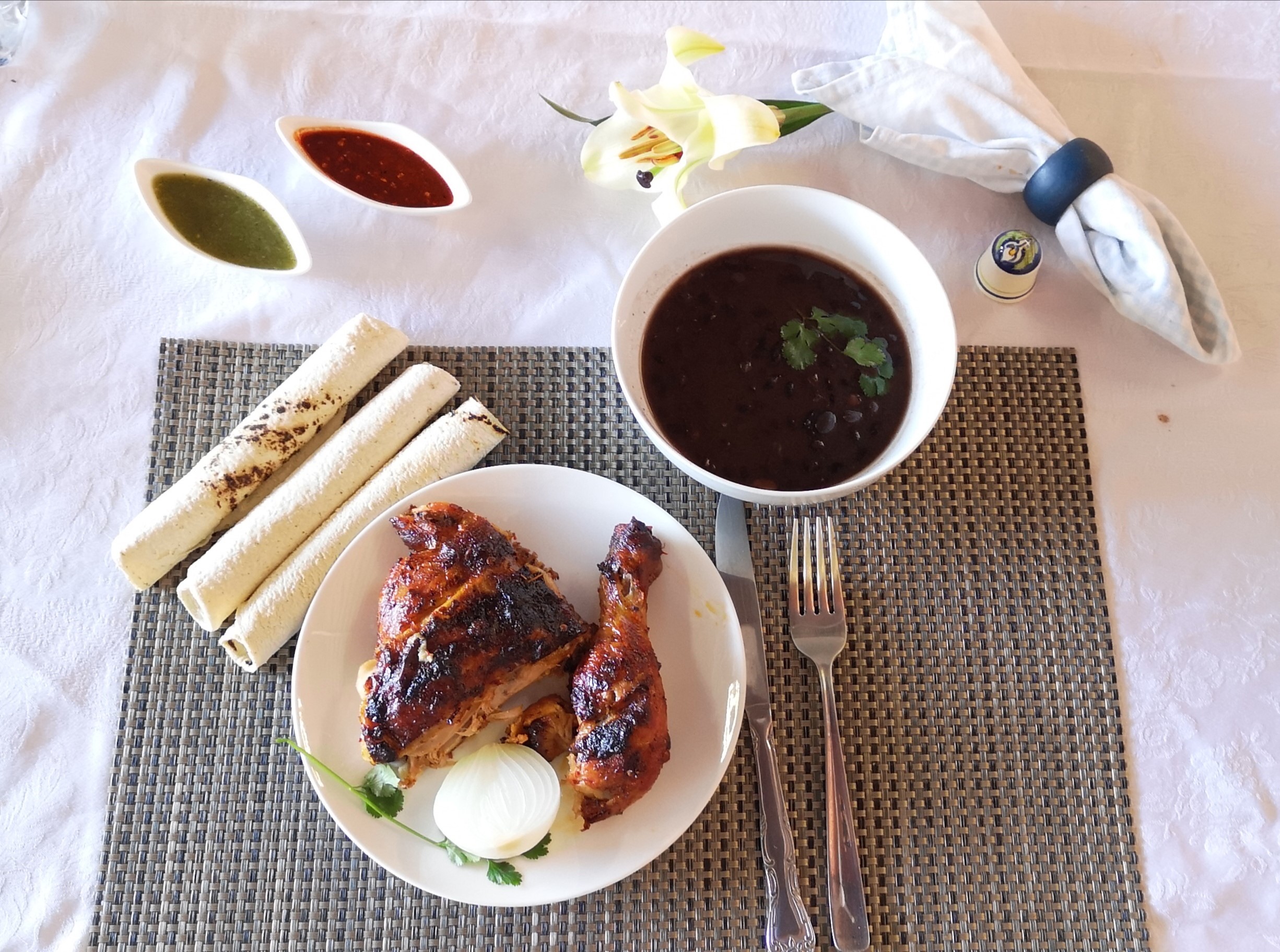 Incluye : frijoles, cebolla asada , salsa verde y roja y 4 tortillas a mano