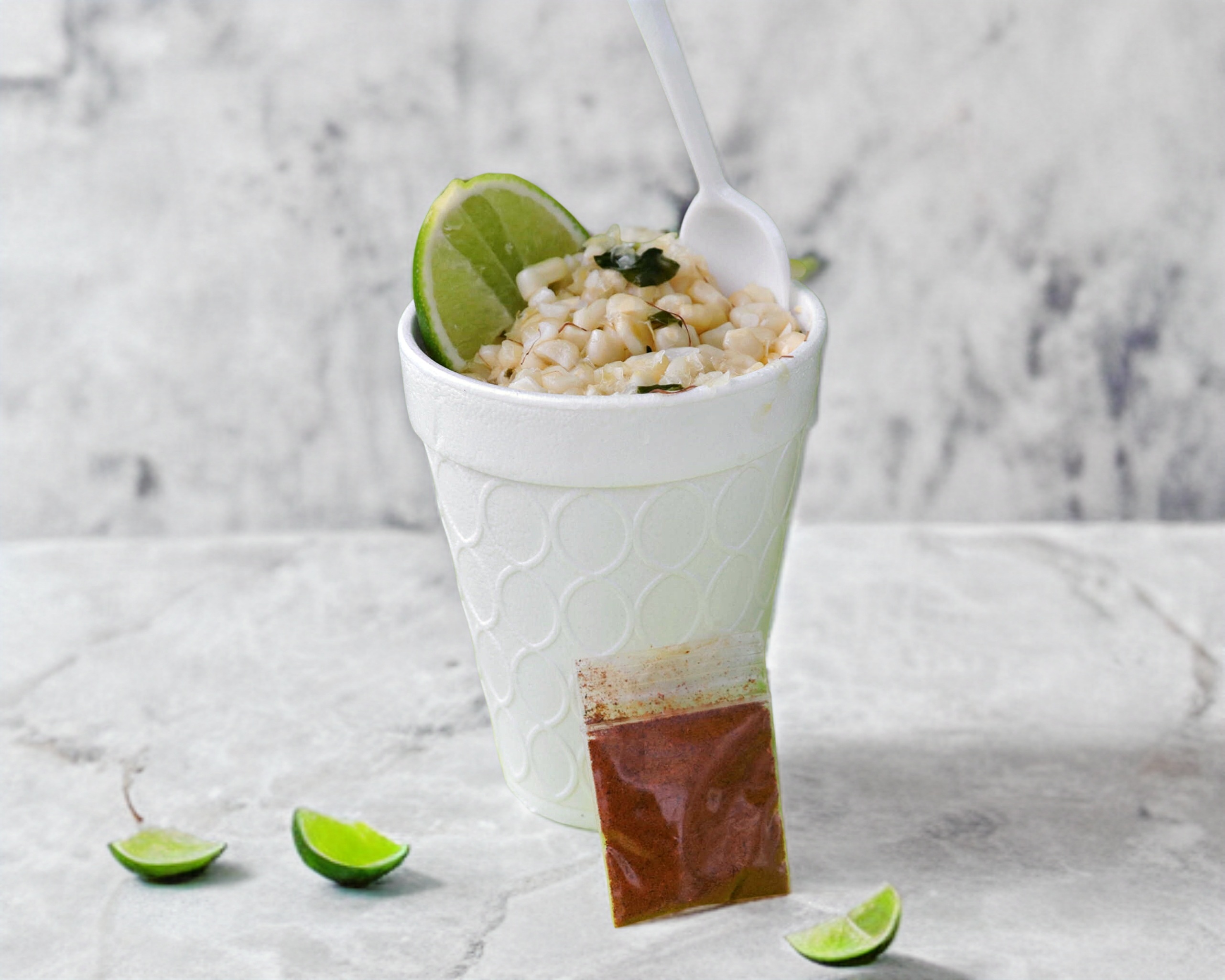 Esquite con Mayonesa, Medio Litro incluye aderezo y limon