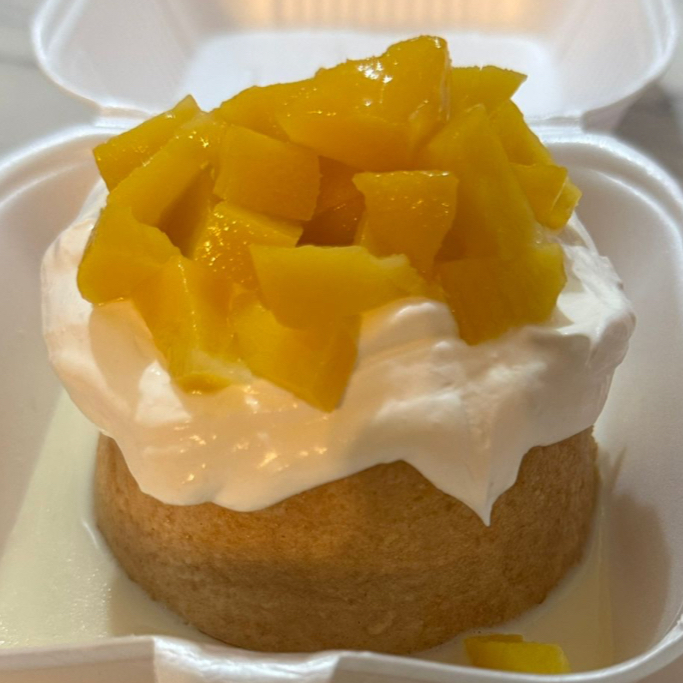 DELICIOSO Y HUMEDO PASTEL 3 LECHES CASERO, ACOMPAÑADO CON CREMA BATIDA Y DELICIOSOS DURAZNOS.