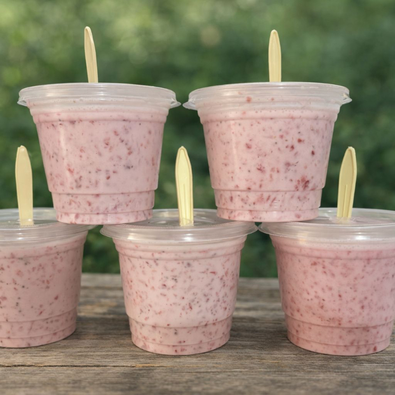 FRESAS NATURALES Y FRESCAS, BAÑADAS CON UNA CREMA DULCE Y SUAVE, UN SABOR CREMOSO E IRRESISTIBLE. 32 oz