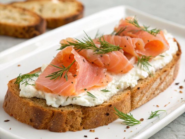 Pan de masa madre, queso crema, aguacate, alcaparras, arugula.