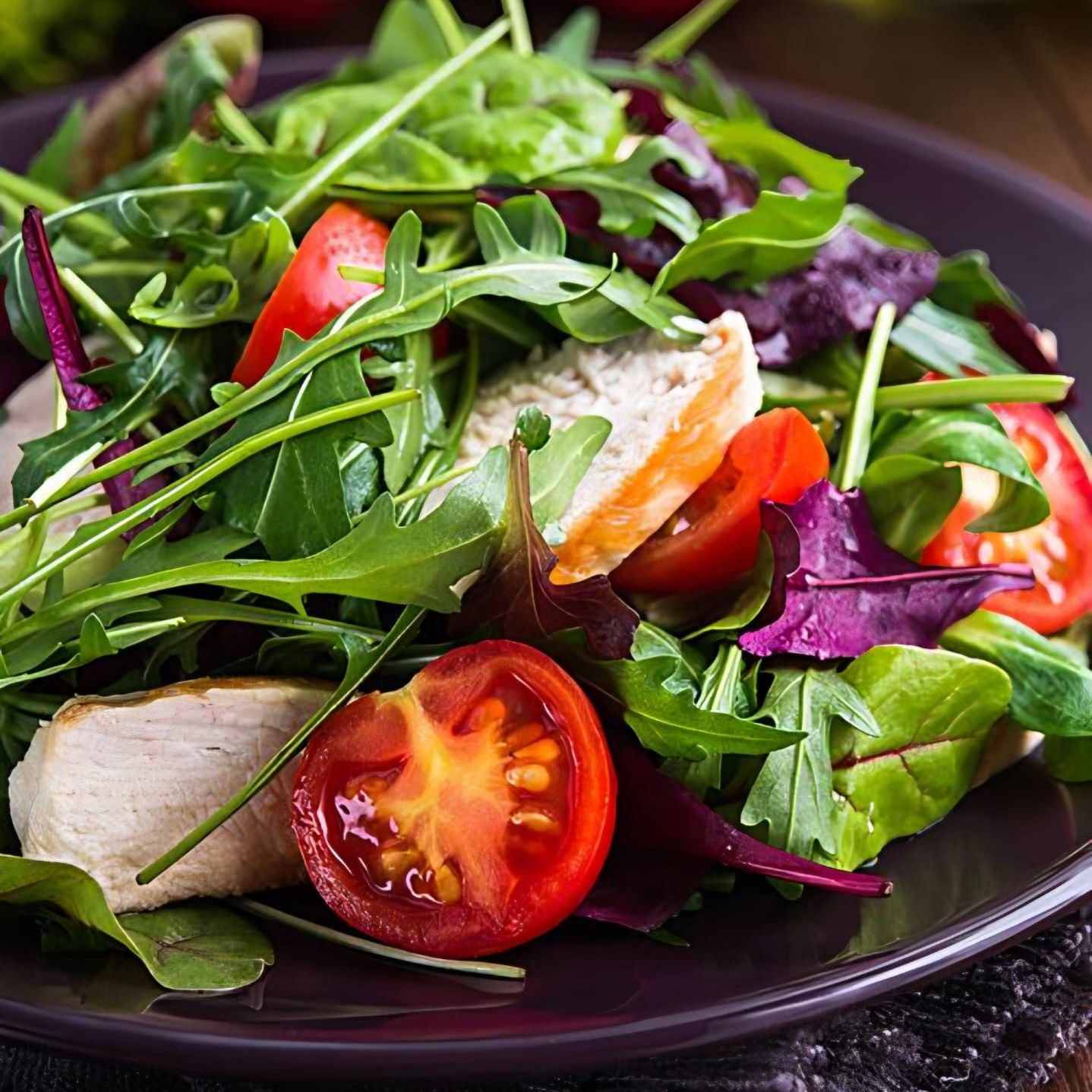 Mix de lechuga, arugula, tomate cherry, vinagreta citricos.