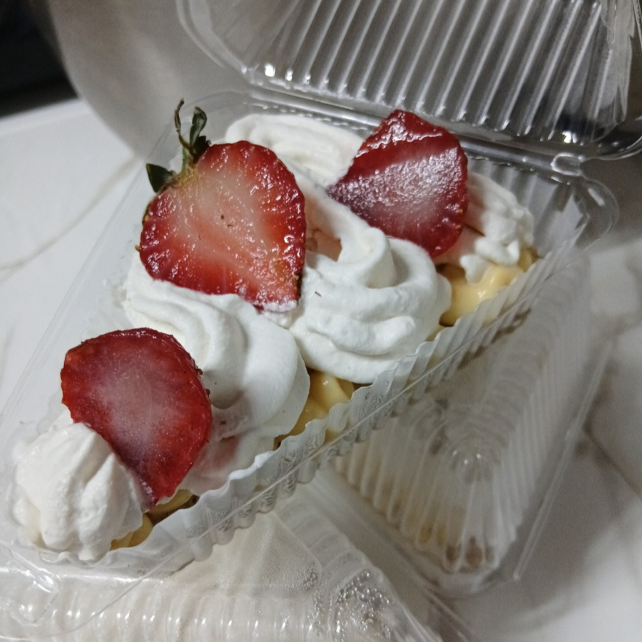 Mini Pastel 3 Leches con Crema Pastelera, Crema Chantilly y fresas.