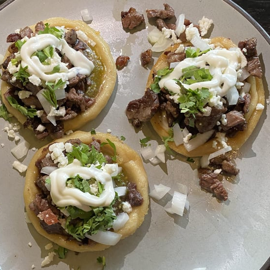 su complemento seria 2 huevos estrellados, queso media crema, cilantro cebolla