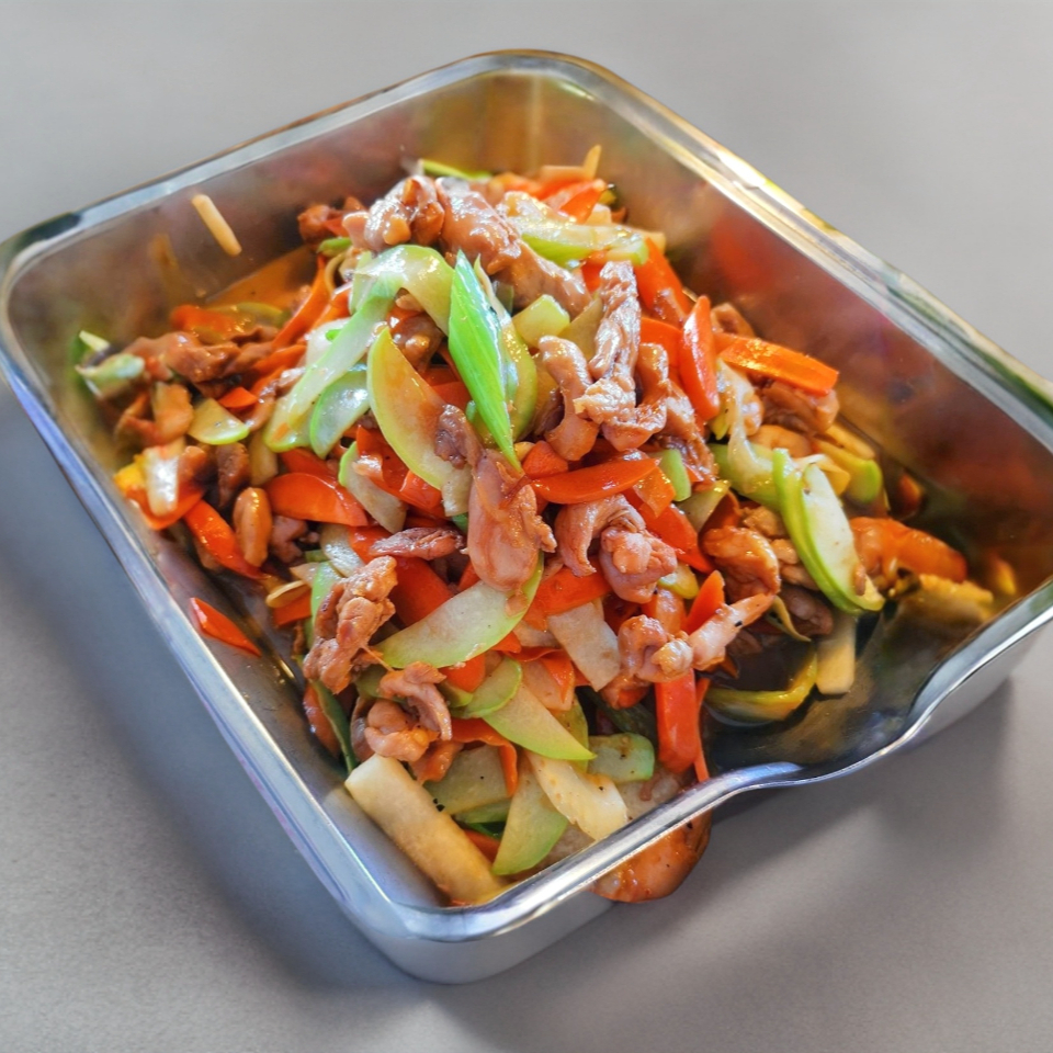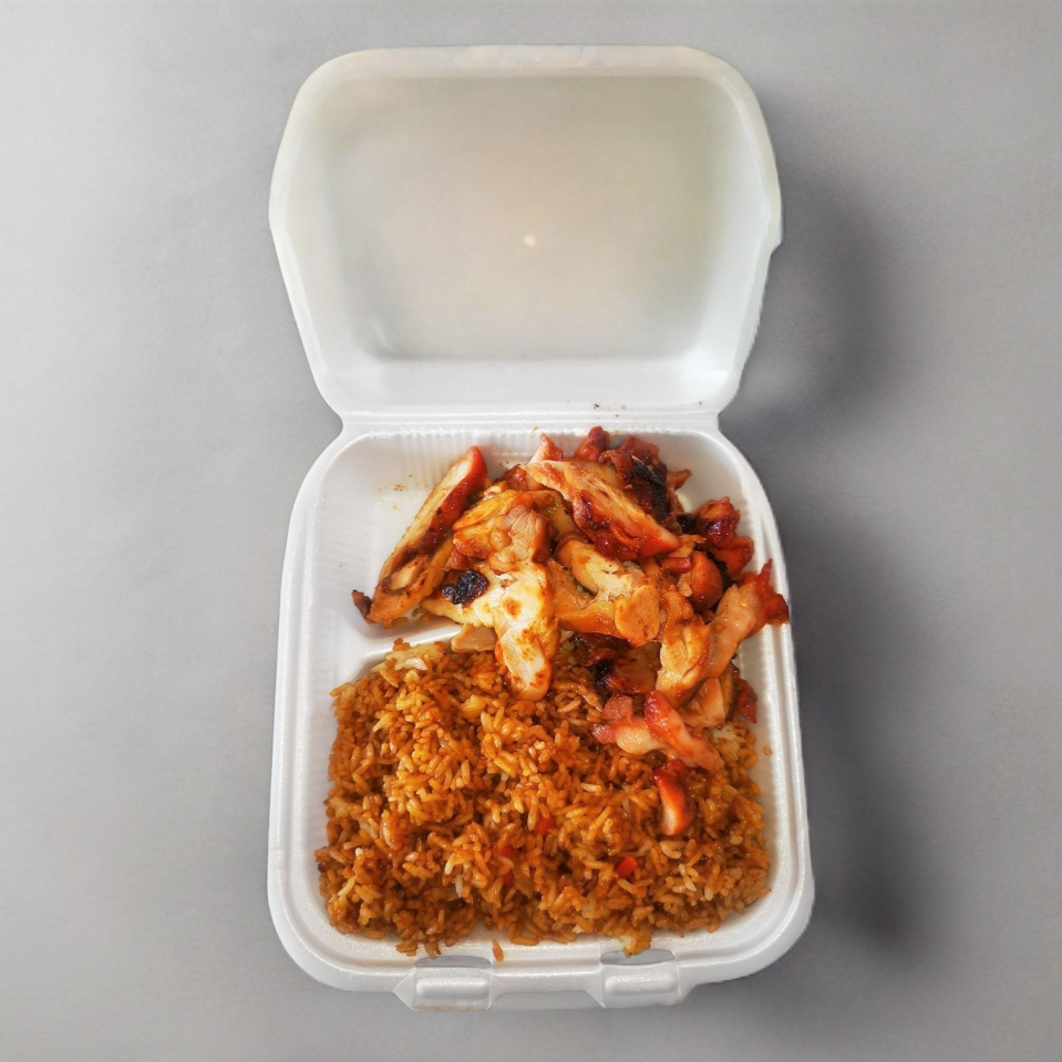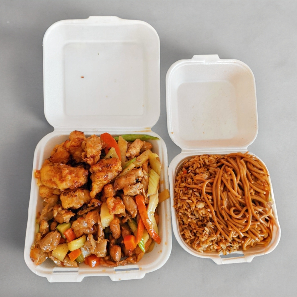 1 o 2 complementos y un guisado. ingredientes su elección pollo 200 gramos aprox, carne de res 200 gramos aprox guisos. salsa aparte ( agridulce y salsa de soya picante)(incluye cubiertos) Platillo personal.